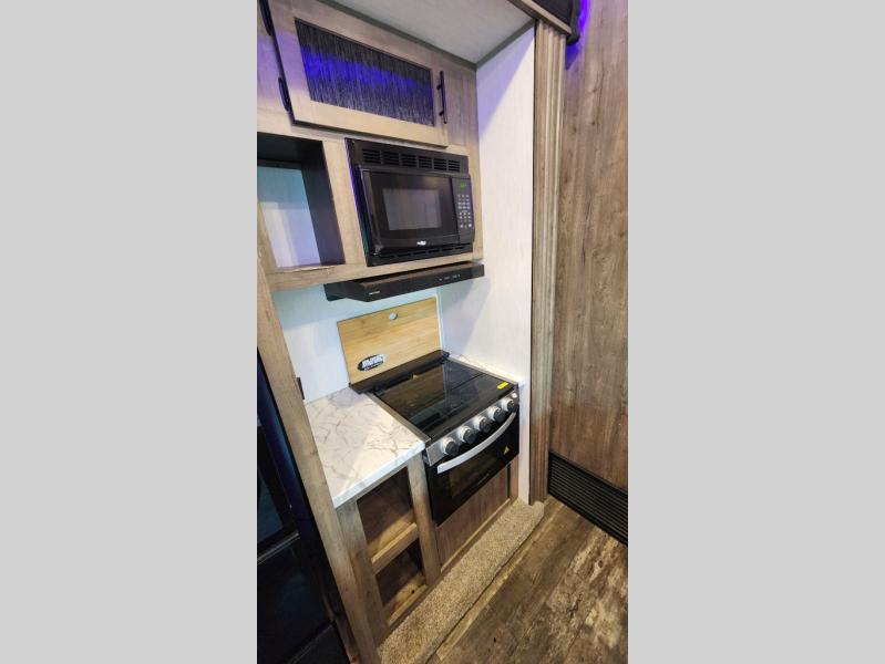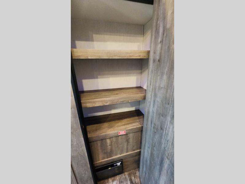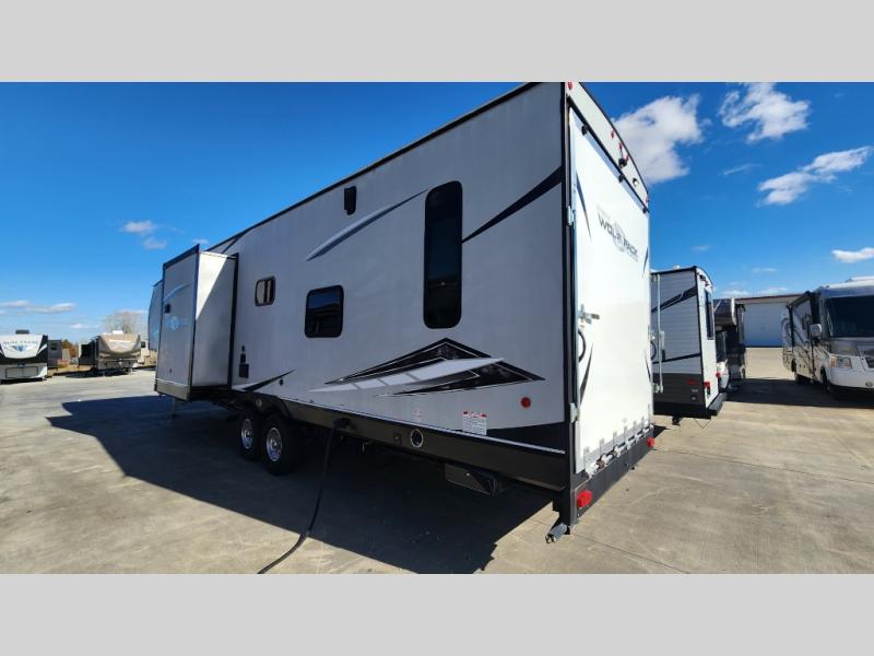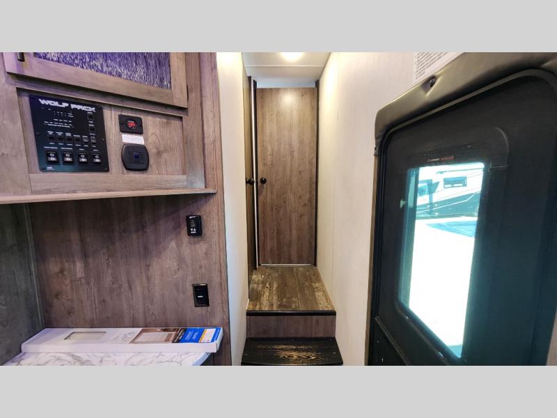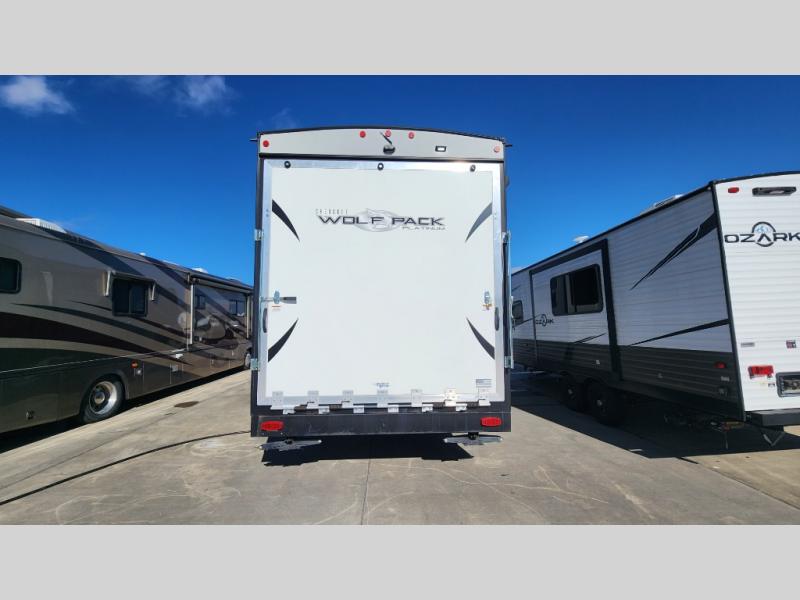 Run with the pack in any one of these Forest River Cherokee Wolf Pack toy haulers! They are affordable and versatile with a 102" widebody design to pack in all of the necessary features for a great adventure with your family and toys. The grey high gloss gel exterior will turn heads on the highway and the LED interior/exterior lights will make life easier. An outside shower with hot and cold water helps to keep the mud outside where it belongs. With an external 30 gallon fuel station, you won't have to worry about your toys being low on fuel. The Platinum package adds extra conveniences like a ramp door patio deck railing system, a Happijac bed lift system, and an industrial rubber garage floor on enclosed garage models. Come find the perfect model for you today!