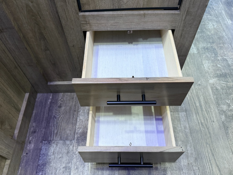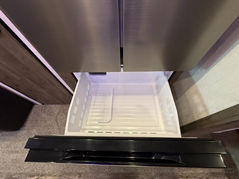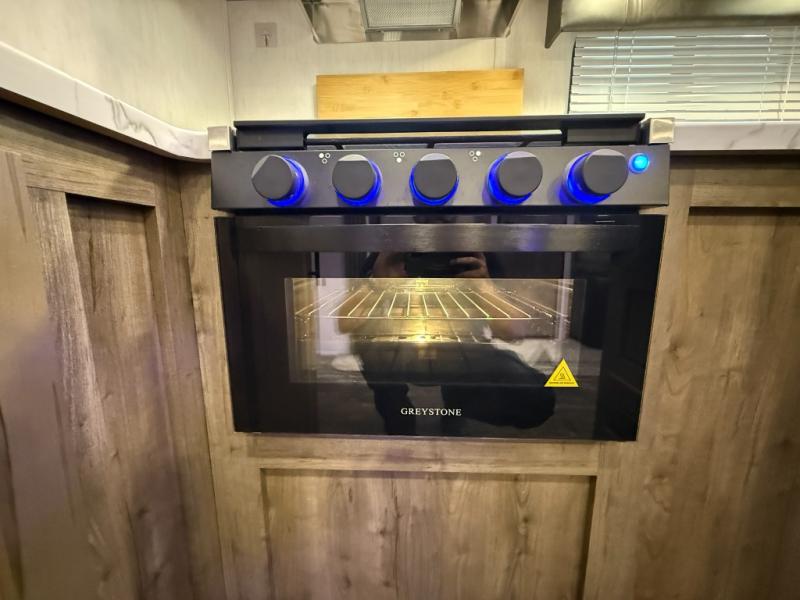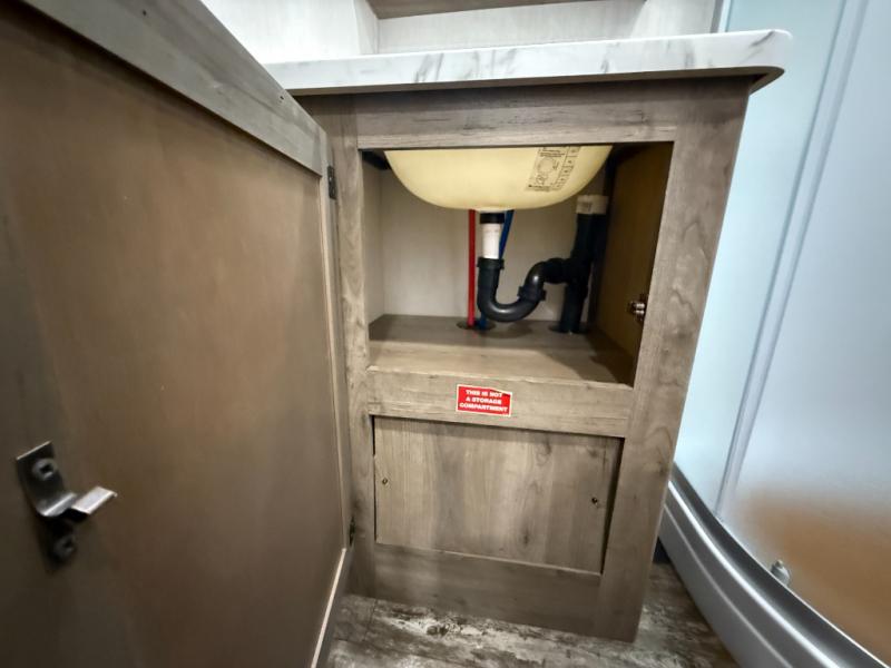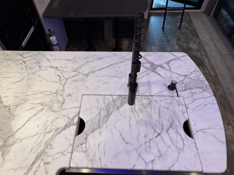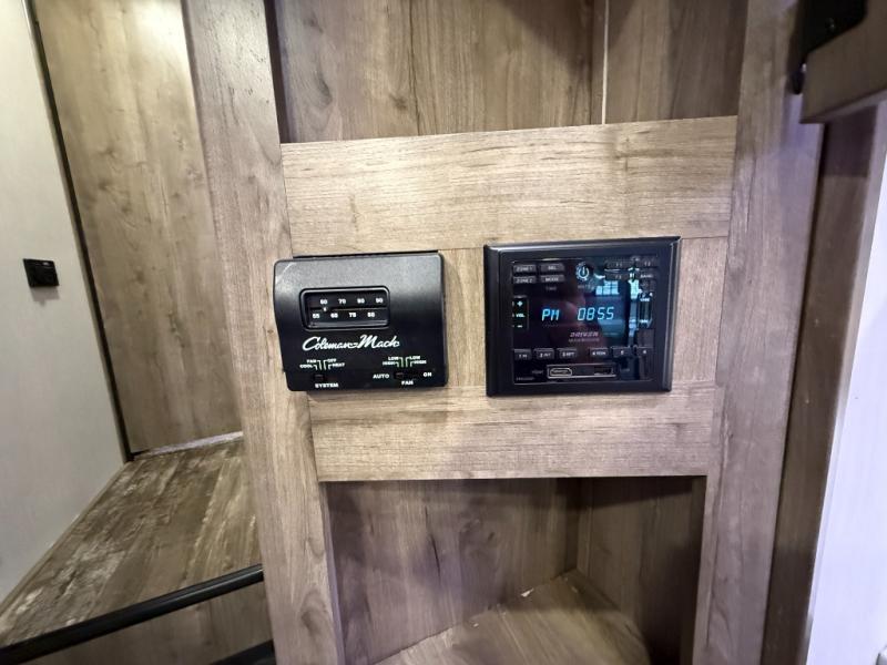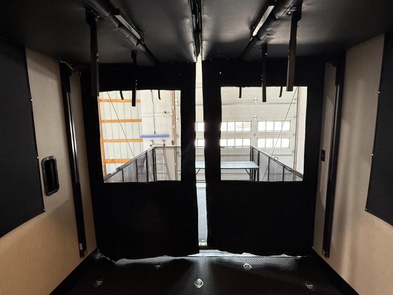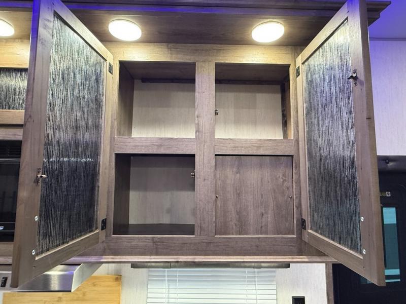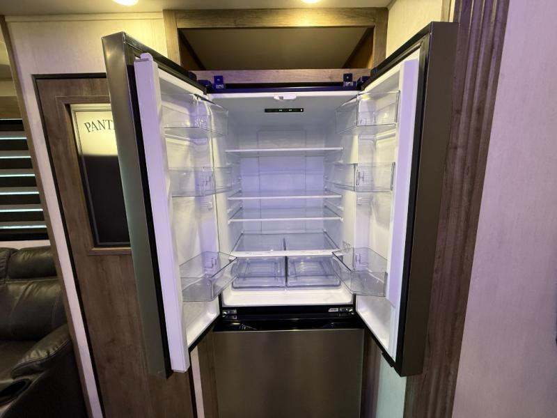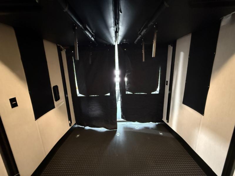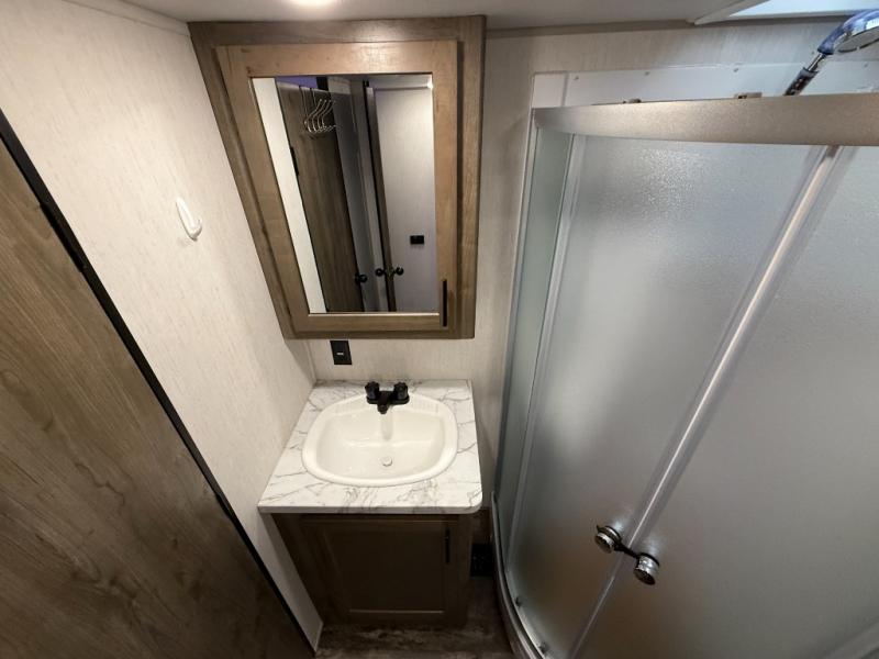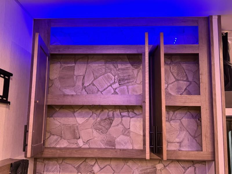 An outside kitchen, a loft, plus dual entry doors make this unit the one! Your guests will love the 13' separate garage that includes a Happijac power bed, plus their own half bath for convenience. The bathroom walls can fold to provide more space when loading toys, and the ramp door can convert to a "party patio" for more fun. Now, that sounds like a fun bunkhouse! Head to the main living area to relax on the party recliner sofa within the large slide, and you can grab a snack from the large pantry. When sleep is calling your name head to front master bedroom for a great night's rest on the Wolf Pack king bed, and you can store your clothes in the slide out wardrobe. This model also includes a pass-through storage with D-rings so you can secure your gear on the way to the campground!