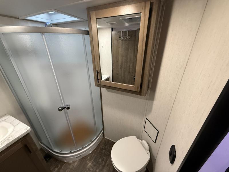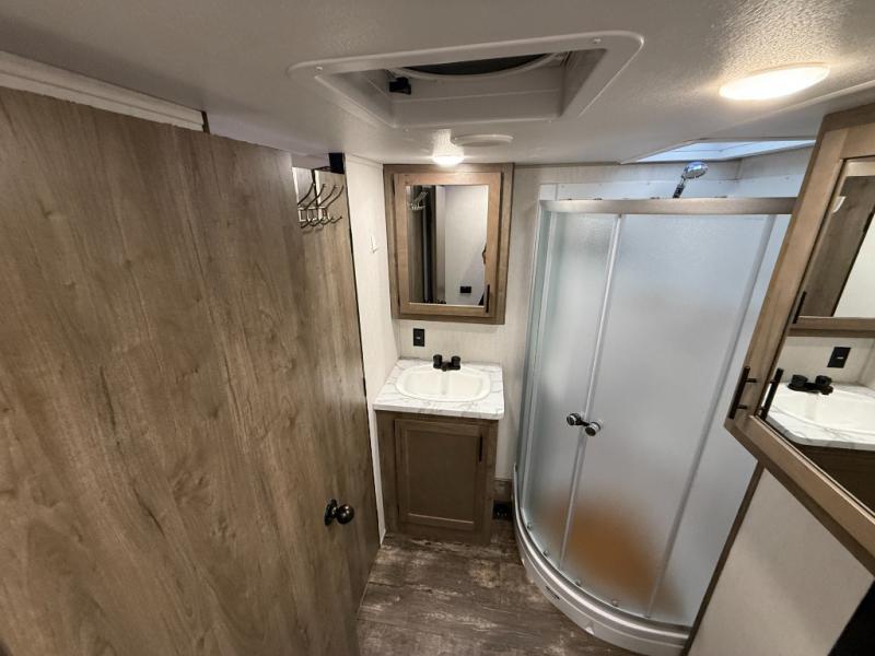 The versatile Cherokee Wolf Pack toy haulers are ready for all your excursions! Each model includes a true high gloss gel coat, a 102" wide body design, and a forced air heated underbelly and enclosed holding tanks so you can camp year around. You will enjoy hassle-free features such as, the in cab tire pressure monitor system, the Happijac bed lift system, and the 100 gallon fresh water capacity. Each model includes a shower skylight, LED interior/exterior lights, Zebra shades in the living area, and a black stainless steel farm sink for that added touch-of-home. The fifth wheels include stabilizer jacks, a second 15K A/C unit in the bedroom, and 50 Amp service. You will appreciate 30 Amp service in the travel trailers, a power tongue jack, and ramp door cables. These toy haulers also include USB charging stations to keep all your gadgets charged and ready to go, premium Teddy Bear bunk mats for comfortability, and a reverse activated light and backup camera for easy loading and unloading!