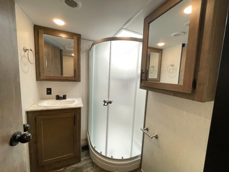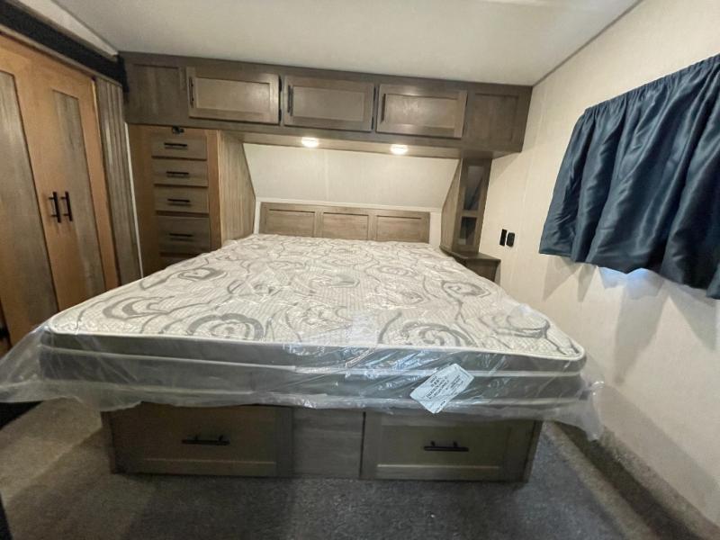 Run with the pack in any one of these Forest River Cherokee Wolf Pack toy haulers! They are affordable and versatile with a 102" widebody design to pack in all of the necessary features for a great adventure with your family and toys. The grey high gloss gel exterior will turn heads on the highway and the LED interior/exterior lights will make life easier. An outside shower with hot and cold water helps to keep the mud outside where it belongs. With an external 30 gallon fuel station, you won't have to worry about your toys being low on fuel. The Platinum package adds extra conveniences like a ramp door patio deck railing system, a Happijac bed lift system, and an industrial rubber garage floor on enclosed garage models. Come find the perfect model for you today!
