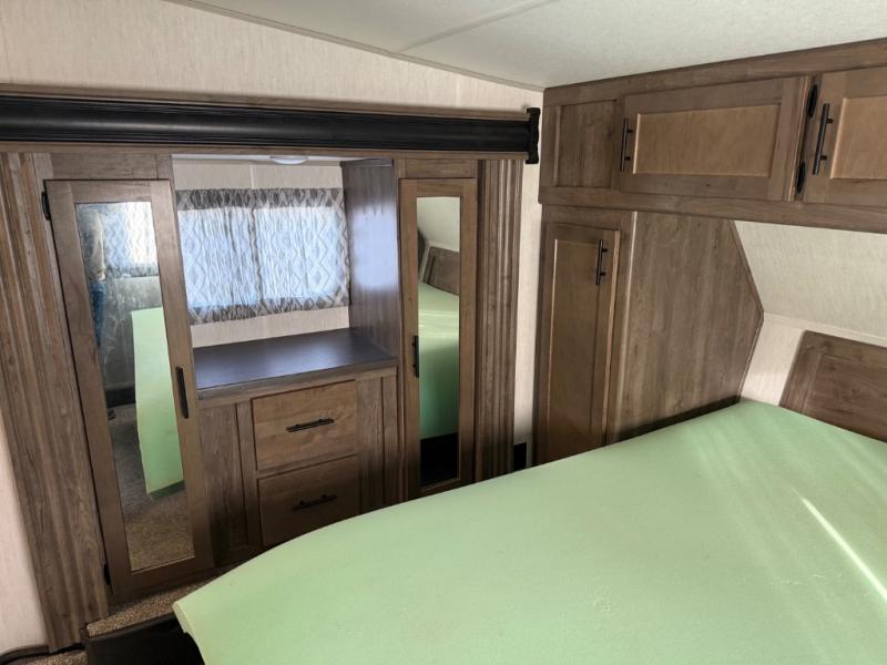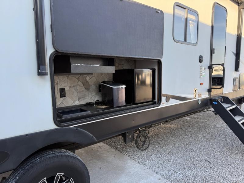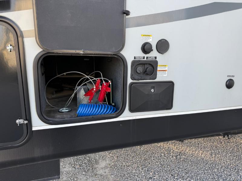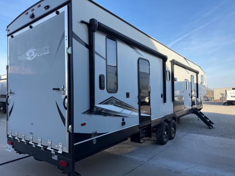 Run with the pack in any one of these Forest River Cherokee Wolf Pack toy haulers! They are affordable and versatile with a 102" widebody design to pack in all of the necessary features for a great adventure with your family and toys. The grey high gloss gel exterior will turn heads on the highway and the LED interior/exterior lights will make life easier. An outside shower with hot and cold water helps to keep the mud outside where it belongs. With an external 30 gallon fuel station, you won't have to worry about your toys being low on fuel. The Platinum package adds extra conveniences like a ramp door patio deck railing system, a Happijac bed lift system, and an industrial rubber garage floor on enclosed garage models. Come find the perfect model for you today!