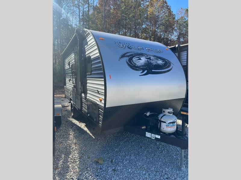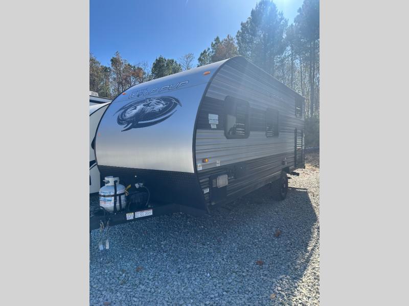 Each one of these Forest River Cherokee Wolf Pup travel trailers and toy haulers are lightweight and easy to tow! They are fully self contained with ample tank capacities, an abundance of storage space, and filled with at home amenities. The aerodynamic smooth radius front profile, the Power Gear frame technology, and the space saver rail design make them easier to maneuver. You will also appreciate the seamless roofing membrane with heat reflectivity to keep the sun from making your unit a hot box. The tongue and groove plywood flooring will hold up for years of fun and the USB charging stations help to keep your electronics at 100% while you're away. Come find the best model for you today!