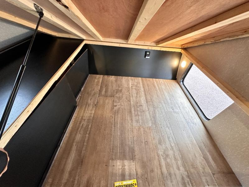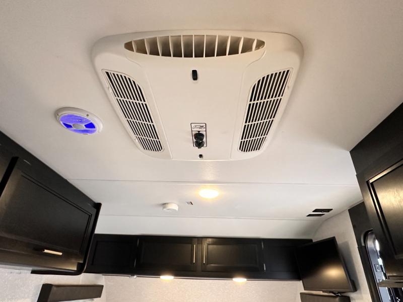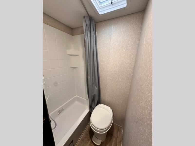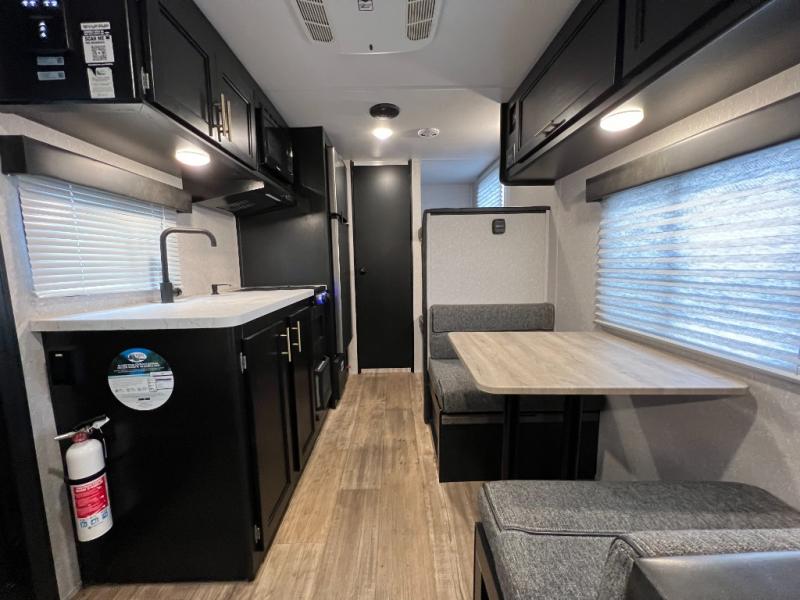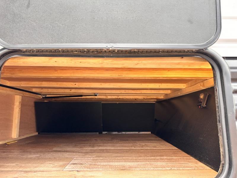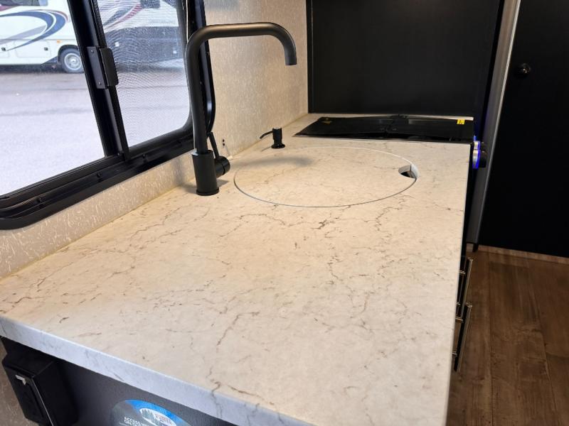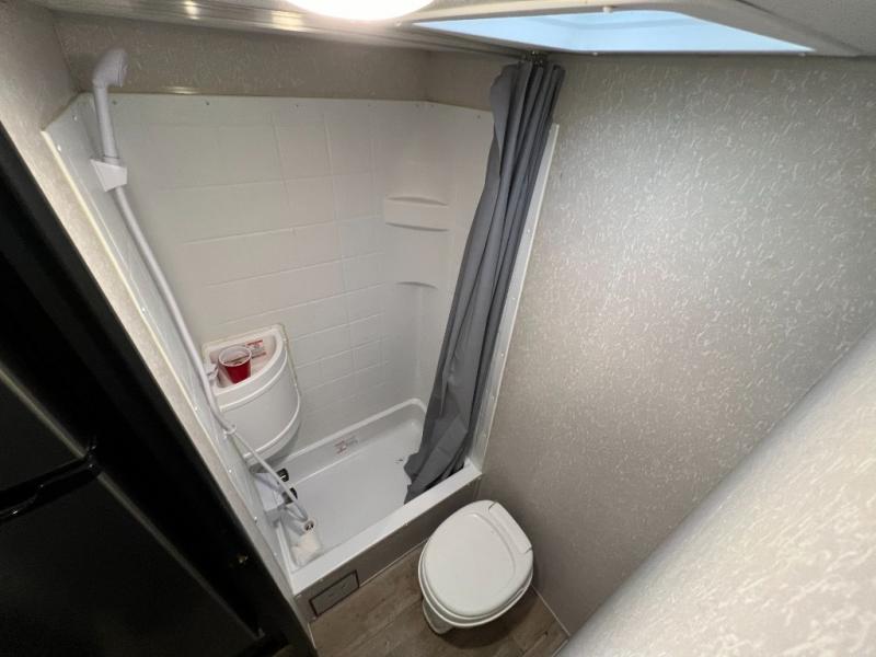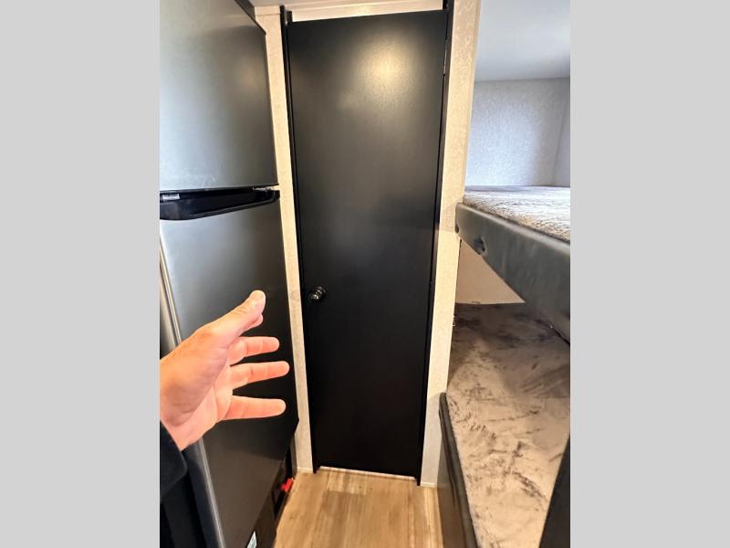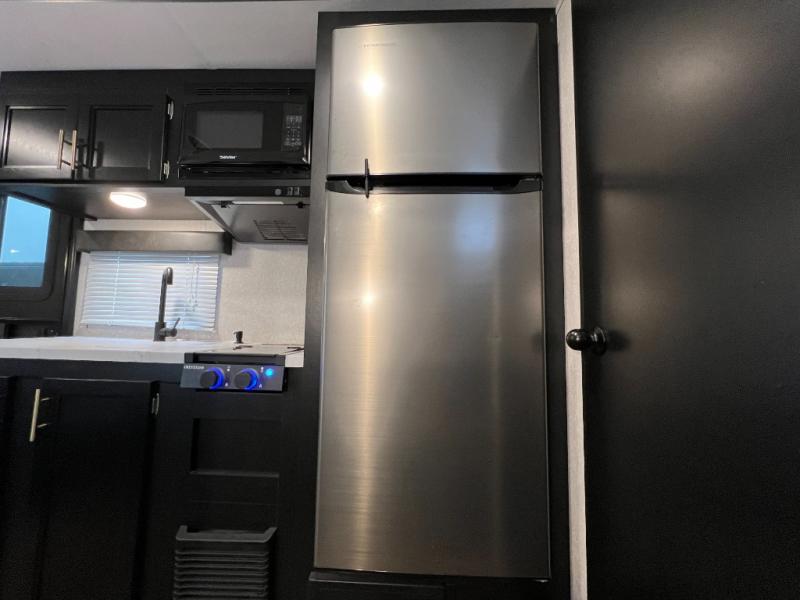 The whole family can sleep comfortably in this travel trailer! It has a set of bunk beds for the kids to sleep on with a TV mount location for extra entertainment, and you can sleep comfortably on the front queen bed with overhead cabinets and a shelf. There is even an exterior pack and play door that accesses the storage space under the bottom bunk. The chef will enjoy preparing their best home cooked meals either indoors with the high output cooktop or at the outside mini kitchen while staying protected by the 12' power awning, plus you have an outside TV mount location for added entertainment while you cook!