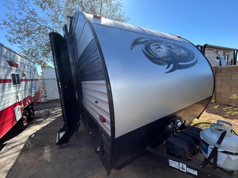 Each one of these Forest River Cherokee Wolf Pup travel trailers and toy haulers are lightweight and easy to tow! They are fully self contained with ample tank capacities, an abundance of storage space, and filled with at home amenities. The aerodynamic smooth radius front profile, the Power Gear frame technology, and the space saver rail design make them easier to maneuver. You will also appreciate the seamless roofing membrane with heat reflectivity to keep the sun from making your unit a hot box. The tongue and groove plywood flooring will hold up for years of fun and the USB charging stations help to keep your electronics at 100% while you're away. Come find the best model for you today!