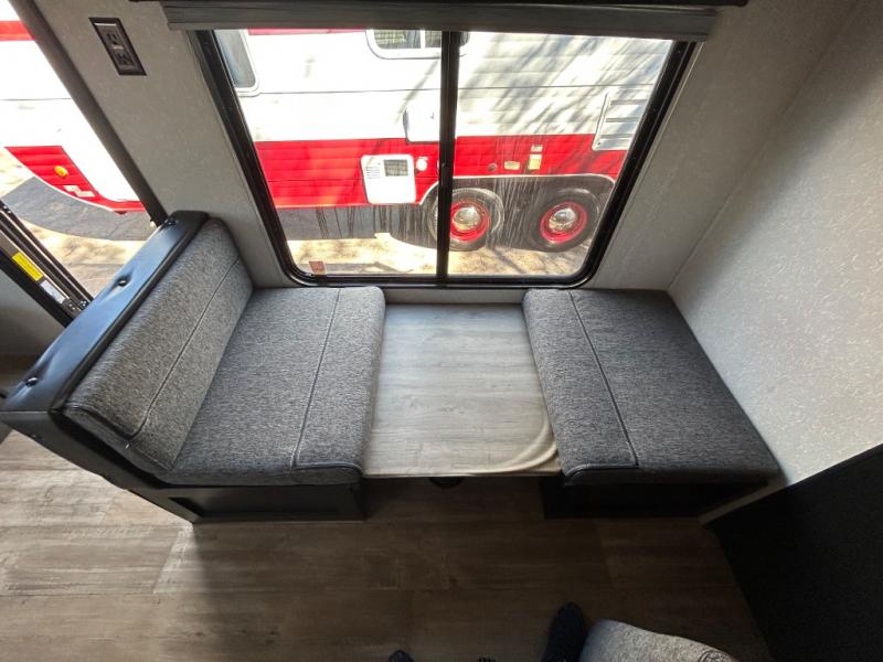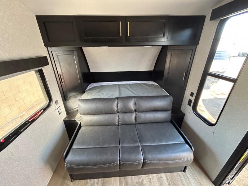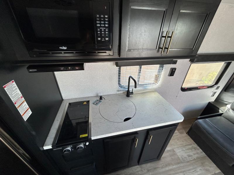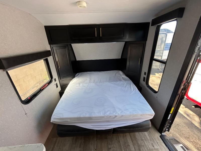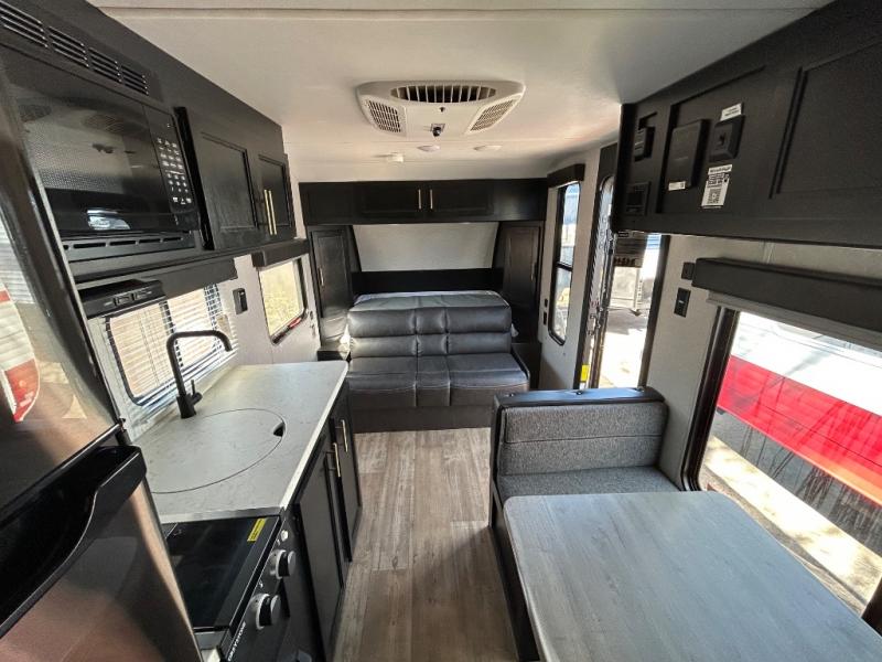 You will experience versatile living in this travel trailer with the Cherokee Sleep System! It lets you easily convert the front queen bed into a comfortable sofa to sit on during the day. Freshen up each morning in the full rear bathroom with the tub/shower and large sink with cabinet storage below it and mirror above it. Fill your bellies with the perishables stored in the 11 cu. ft. Cannon high efficiency refrigerator and cook them on the high output cooktop then enjoy them at the booth dinette. You could even prepare a meal while breathing in some fresh air at the outside mini kitchen while staying protected by the 12' power awning. Easily store all of your outdoor gear in the outside storage area too!