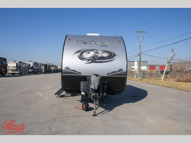 Each one of these Forest River Cherokee Wolf Pup travel trailers and toy haulers are lightweight and easy to tow! They are fully self contained with ample tank capacities, an abundance of storage space, and filled with at home amenities. The aerodynamic smooth radius front profile, the Power Gear frame technology, and the space saver rail design make them easier to maneuver. You will also appreciate the seamless roofing membrane with heat reflectivity to keep the sun from making your unit a hot box. The tongue and groove plywood flooring will hold up for years of fun and the USB charging stations help to keep your electronics at 100% while you're away. Come find the best model for you today!