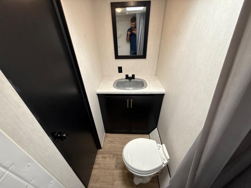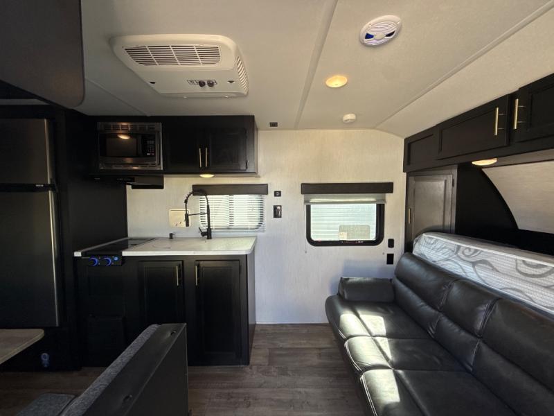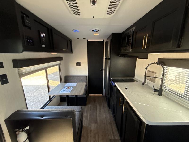 You will experience versatile living in this travel trailer with the Cherokee Sleep System! It lets you easily convert the front queen bed into a comfortable sofa to sit on during the day. Freshen up each morning in the full rear bathroom with the tub/shower and large sink with cabinet storage below it and mirror above it. Fill your bellies with the perishables stored in the 11 cu. ft. Cannon high efficiency refrigerator and cook them on the high output cooktop then enjoy them at the booth dinette. You could even prepare a meal while breathing in some fresh air at the outside mini kitchen while staying protected by the 12' power awning. Easily store all of your outdoor gear in the outside storage area too!