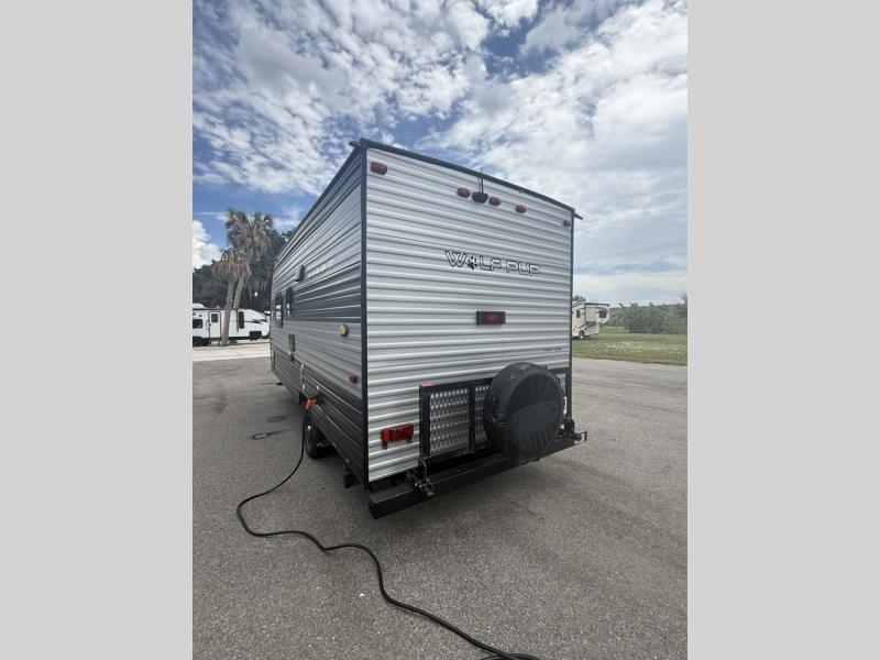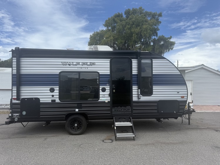 Each one of these Forest River Cherokee Wolf Pup travel trailers and toy haulers are lightweight and easy to tow! They are fully self contained with ample tank capacities, an abundance of storage space, and filled with at home amenities. The aerodynamic smooth radius front profile, the Power Gear frame technology, and the space saver rail design make them easier to maneuver. You will also appreciate the seamless roofing membrane with heat reflectivity to keep the sun from making your unit a hot box. The tongue and groove plywood flooring will hold up for years of fun and the USB charging stations help to keep your electronics at 100% while you're away. Come find the best model for you today!