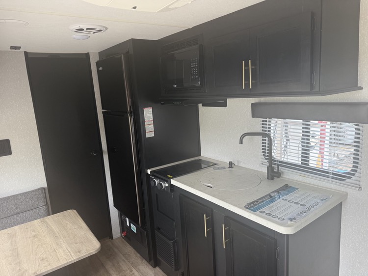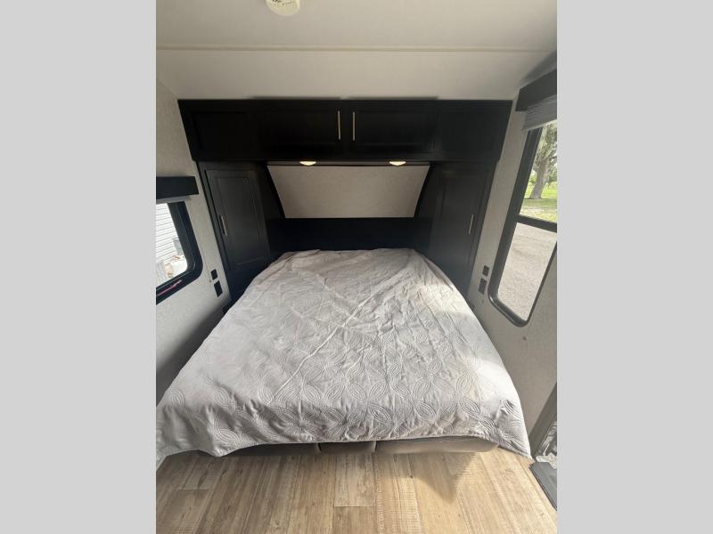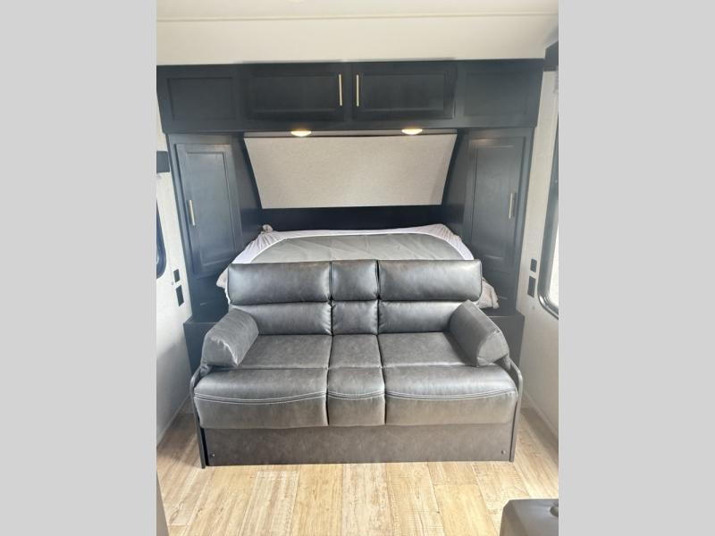 You will experience versatile living in this travel trailer with the Cherokee Sleep System! It lets you easily convert the front queen bed into a comfortable sofa to sit on during the day. Freshen up each morning in the full rear bathroom with the tub/shower and large sink with cabinet storage below it and mirror above it. Fill your bellies with the perishables stored in the 11 cu. ft. Cannon high efficiency refrigerator and cook them on the high output cooktop then enjoy them at the booth dinette. You could even prepare a meal while breathing in some fresh air at the outside mini kitchen while staying protected by the 12' power awning. Easily store all of your outdoor gear in the outside storage area too!