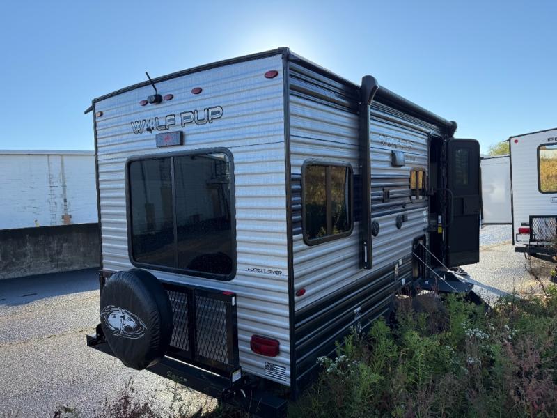 Each one of these Forest River Cherokee Wolf Pup travel trailers and toy haulers are lightweight and easy to tow! They are fully self contained with ample tank capacities, an abundance of storage space, and filled with at home amenities. The aerodynamic smooth radius front profile, the Power Gear frame technology, and the space saver rail design make them easier to maneuver. You will also appreciate the seamless roofing membrane with heat reflectivity to keep the sun from making your unit a hot box. The tongue and groove plywood flooring will hold up for years of fun and the USB charging stations help to keep your electronics at 100% while you're away. Come find the best model for you today!