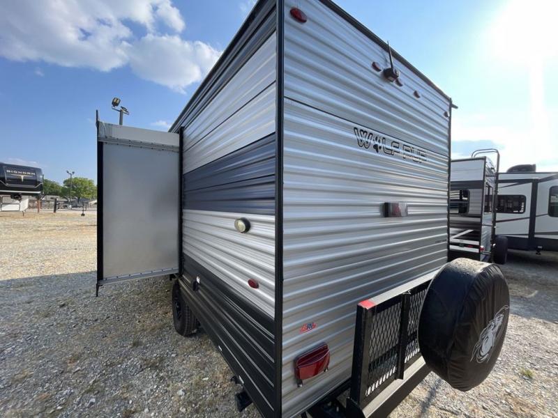 Each one of these Forest River Cherokee Wolf Pup travel trailers and toy haulers are lightweight and easy to tow! They are fully self contained with ample tank capacities, an abundance of storage space, and filled with at home amenities. The aerodynamic smooth radius front profile, the Power Gear frame technology, and the space saver rail design make them easier to maneuver. You will also appreciate the seamless roofing membrane with heat reflectivity to keep the sun from making your unit a hot box. The tongue and groove plywood flooring will hold up for years of fun and the USB charging stations help to keep your electronics at 100% while you're away. Come find the best model for you today!