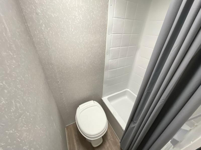 This family travel trailer is ready to head to the campground whenever you are! The kiddos can sleep on the set of bunk beds and you can sleep on the front queen bed, plus the U-shaped dinette slide can also transform into an extra sleeping space when you aren't using it to enjoy a meal prepared with the high output cooktop. You can also prepare your delicious meals at the outside mini kitchen and stay protected by the 12' power awning. The exterior not only as outside storage and an outside TV mount, but also an outside storage plus door for access to the storage space underneath the bottom bunk bed. Everyone can stay squeaky clean with the tub/shower in the rear corner bathroom too!