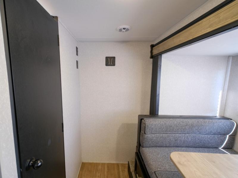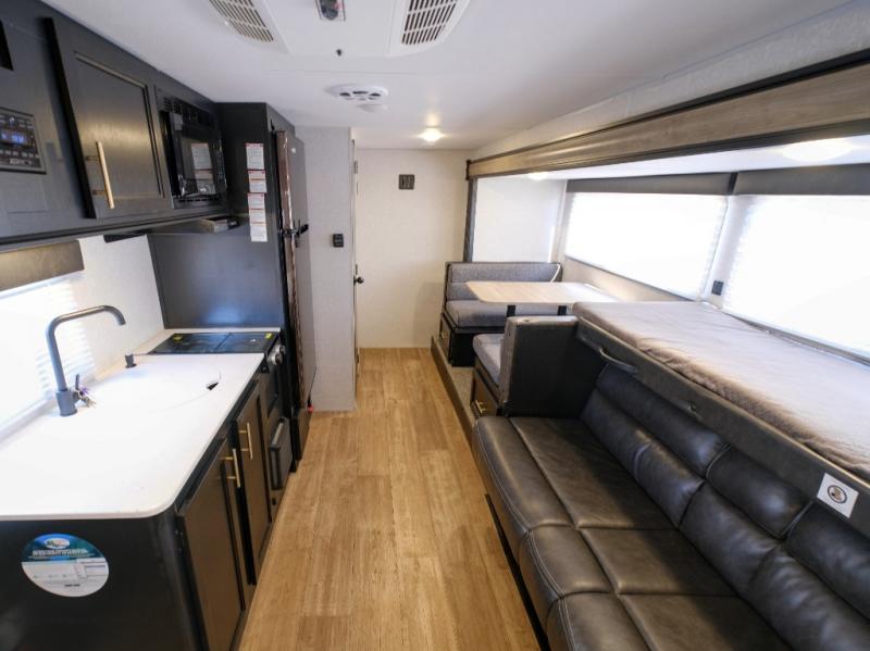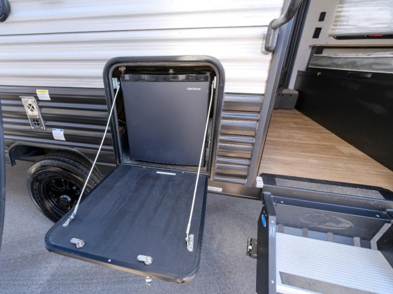 Enjoy plenty of walking around space in this travel trailer with the full slide! Inside the slide is a sofa with a hidden bunk above it and a booth dinette to play card games and enjoy delicious meals prepared with the high output cooktop and 11 cu. ft. Cannon high efficiency refrigerator. There is also an outside mini kitchen to cook your meals, outside storage to keep your camping chairs, and a 12' power awning to protect you while you cook and relax in the chair. For your entertainment needs, there is an outside TV mount and a TV mount location next to the rear corner bathroom which has a tub/shower to get squeaky clean each morning!
