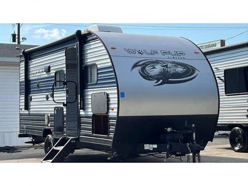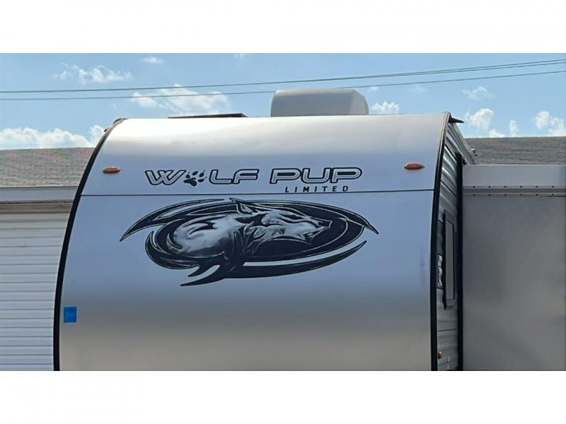 Each one of these Forest River Cherokee Wolf Pup travel trailers and toy haulers are lightweight and easy to tow! They are fully self contained with ample tank capacities, an abundance of storage space, and filled with at home amenities. The aerodynamic smooth radius front profile, the Power Gear frame technology, and the space saver rail design make them easier to maneuver. You will also appreciate the seamless roofing membrane with heat reflectivity to keep the sun from making your unit a hot box. The tongue and groove plywood flooring will hold up for years of fun and the USB charging stations help to keep your electronics at 100% while you're away. Come find the best model for you today!