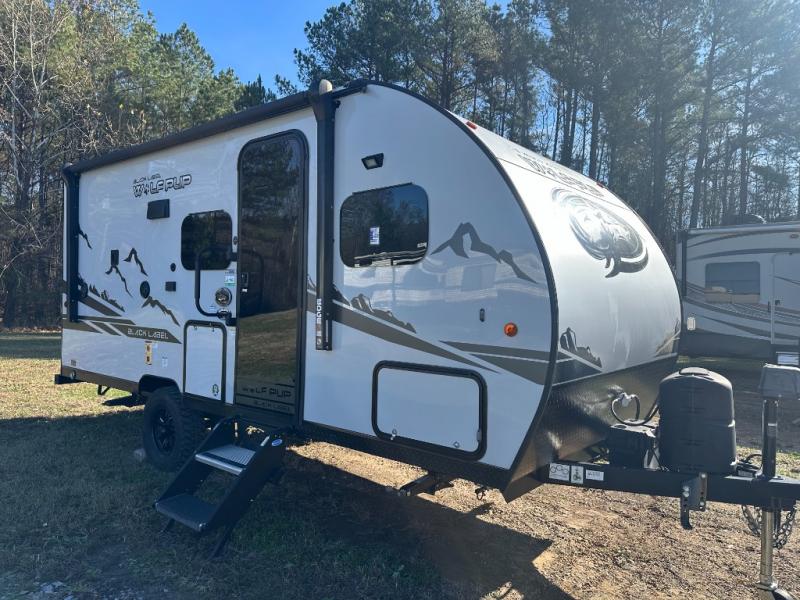 Come see how easy these Forest River Cherokee Wolf Pup Black Label travel trailers and toy hauler are to haul! They are fully self contained with ample tank capacities, an abundance of storage space, and filled with at home amenities. The aerodynamic smooth radius front profile, the Power Gear frame technology, and the space saver rail design make them easier to maneuver. You will also appreciate the seamless roofing membrane with heat reflectivity to keep the sun from making your unit a hot box. In addition to all of the standard features included, they each come with Black Label features including thermo-foil arctic insulation, a gel coated fiberglass exterior, a power tongue jack, and much more. Choose the best model for you today!