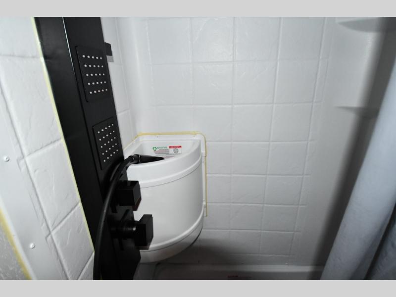 The kitchen is fully equipped to handle everything from quick breakfasts to full meals, with a refrigerator, dual-burner cooktop, microwave, stainless-steel sink, and plenty of storage for cookware and groceries. Enjoy meals at the convertible dinette that transforms into additional sleeping space when needed.