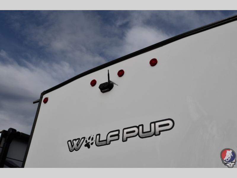 On the outside, this Wolf Pup Black Label is built to handle your adventures with features like a power awning for outdoor shade, exterior storage for gear and camping essentials, and a rugged build that performs well at campgrounds or off-grid locations.
