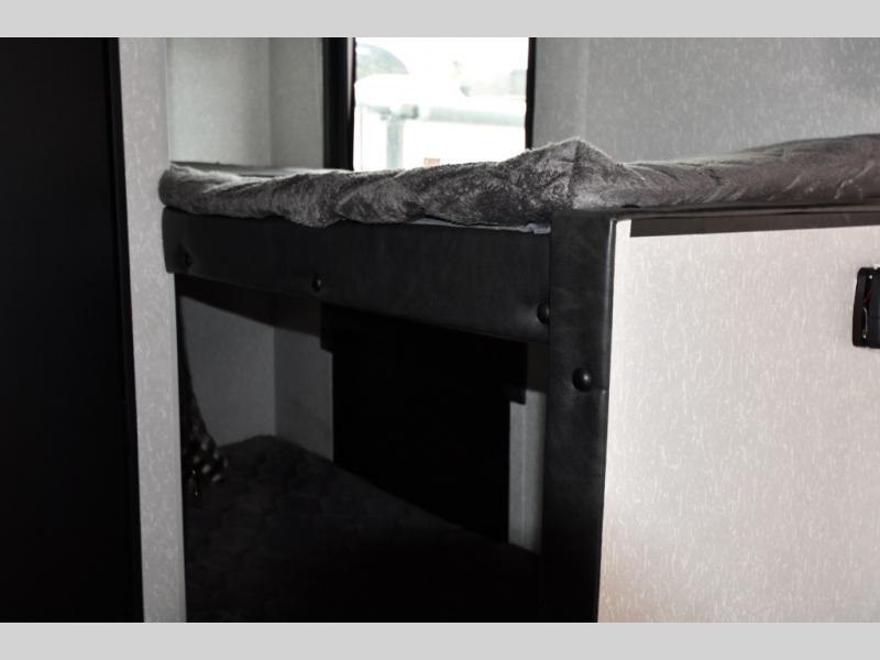 Step inside and discover a thoughtfully laid-out interior that maximizes every inch. The front queen bed provides a comfortable, private sleeping space, while the rear bunk beds make this trailer perfect for families, guests, or extra storage when not in use. Cozy up in the living area with cushioned seating that easily converts for extra sleeping space or lounging after hiking, biking, or paddling at your favorite destination.