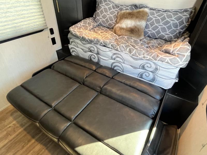 With the Cherokee Sleep System, you will have a versatile camping experience! It lets you easily convert the front queen bed into a comfortable sofa to sit on during the day. Freshen up each morning in the full rear bathroom with the tub/shower and large sink with cabinet storage below it and mirror above it. Fill your bellies with the perishables stored in the 11 cu. ft. Cannon high efficiency refrigerator and cook them on the high output cooktop then enjoy them at the booth dinette. You could even prepare a meal while breathing in some fresh air at the outside mini kitchen while staying protected by the 12' power awning. Easily store all of your outdoor gear in the outside storage area too!