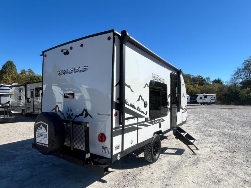 Come see how easy these Forest River Cherokee Wolf Pup Black Label travel trailers and toy hauler are to haul! They are fully self contained with ample tank capacities, an abundance of storage space, and filled with at home amenities. The aerodynamic smooth radius front profile, the Power Gear frame technology, and the space saver rail design make them easier to maneuver. You will also appreciate the seamless roofing membrane with heat reflectivity to keep the sun from making your unit a hot box. In addition to all of the standard features included, they each come with Black Label features including thermo-foil arctic insulation, a gel coated fiberglass exterior, a power tongue jack, and much more. Choose the best model for you today!