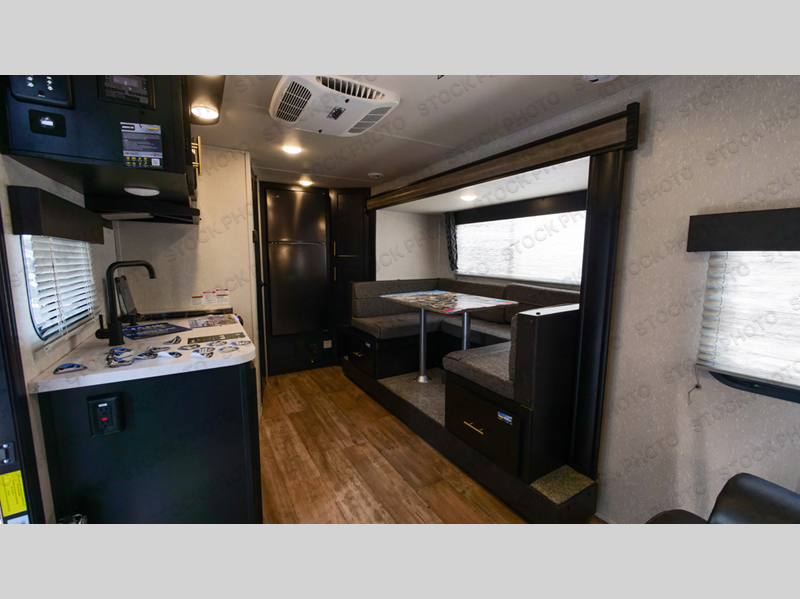 You won't want to camp any other way once you step inside this travel trailer! It features a Cherokee Sleep System that lets you convert the queen bed with pillowtop mattress into a sofa for seating space during the day and also has wardrobes on either side of it for your clothes. The U-shaped dinette slide not only opens up the living and kitchen area, but also provides a comfortable place for meals and even a sleeping space once converted. Speaking of meals, you can prepare your best ones either indoors with the high output cooktop or at the outside mini kitchen while staying protected by the 12' power awning. You even have a tub/shower in the rear corner bathroom to freshen up in each morning!