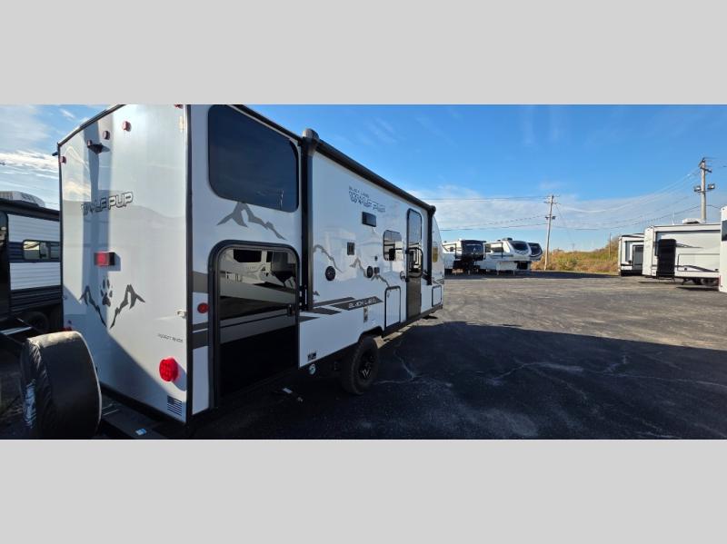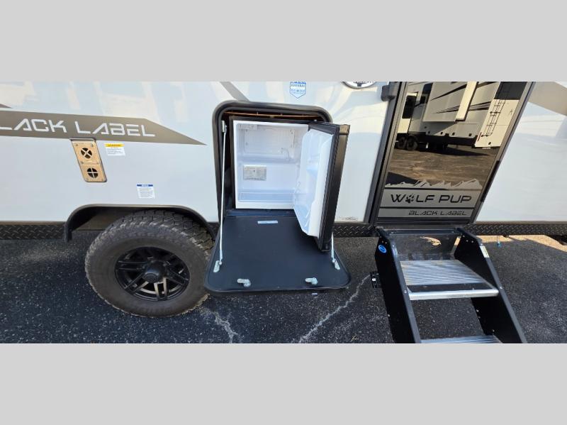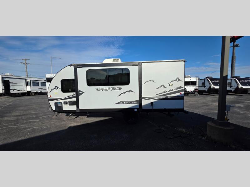 Come see how easy these Forest River Cherokee Wolf Pup Black Label travel trailers and toy hauler are to haul! They are fully self contained with ample tank capacities, an abundance of storage space, and filled with at home amenities. The aerodynamic smooth radius front profile, the Power Gear frame technology, and the space saver rail design make them easier to maneuver. You will also appreciate the seamless roofing membrane with heat reflectivity to keep the sun from making your unit a hot box. In addition to all of the standard features included, they each come with Black Label features including thermo-foil arctic insulation, a gel coated fiberglass exterior, a power tongue jack, and much more. Choose the best model for you today!