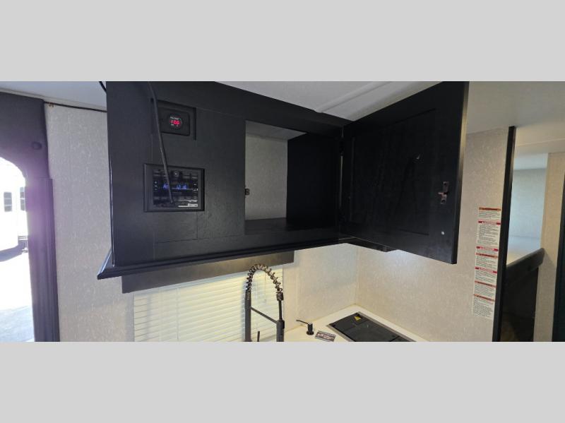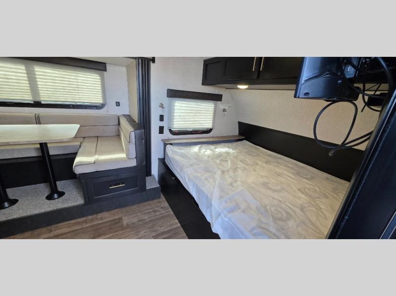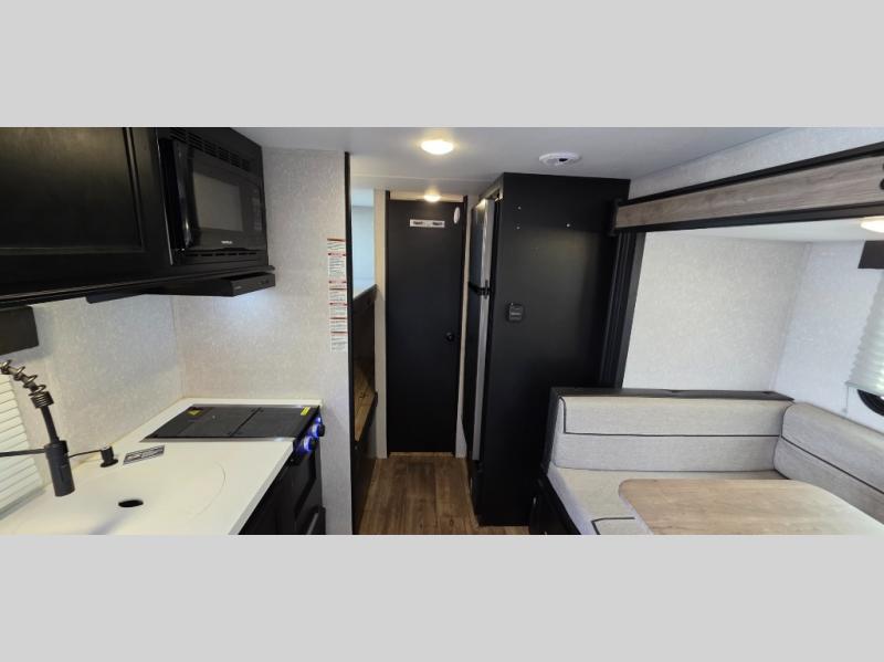 Get away with the family for a fun vacation in this travel trailer! The kiddos can sleep on the set of bunk beds and you can sleep on the front queen bed with a pillowtop mattress and TV mount at the foot of the bed. You could even transform the U-shaped dinette slide into an extra sleeping space for another friend or two to tag along. Everyone can stay squeaky clean with the tub/shower in the rear corner bathroom, and their bellies full with the high output cooktop and 11 cu. ft. Cannon high efficiency refrigerator. There is plenty of storage throughout the inside and outside with the front outside storage area and the storage plus door with access to the storage space underneath the lower bunk bed. Plus, an outside mini kitchen to cook meals in the great outdoors and an outside TV mount for added entertainment!