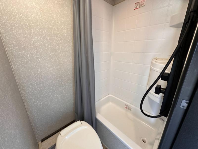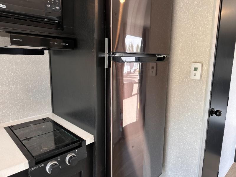 Load up your favorite off-road toys with the ramp door into the 13' 11" garage in this toy hauler! Enjoy all of the at home features like a fully equipped kitchen with a high output cooktop, a 11 cu. ft. Cannon high efficiency refrigerator, and a high output microwave. Comfortably eat your delicious meals at the rear dinette with a removable table for convenience. The full bathroom has a tub/shower for you to freshen up in the morning after getting a good night's rest on the front queen bed. You even have a TV mount location not only inside, but also an outside TV mount. Plus, there is outside storage and an outside shower with hot and cold water!