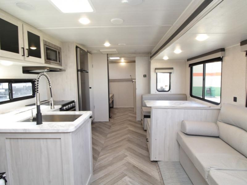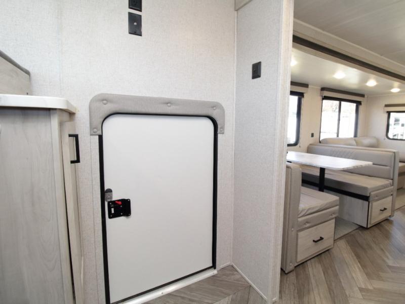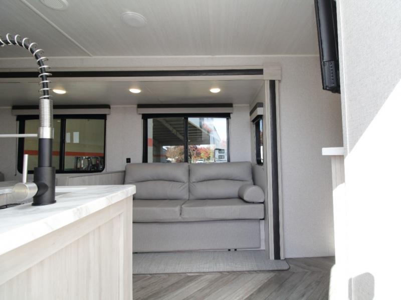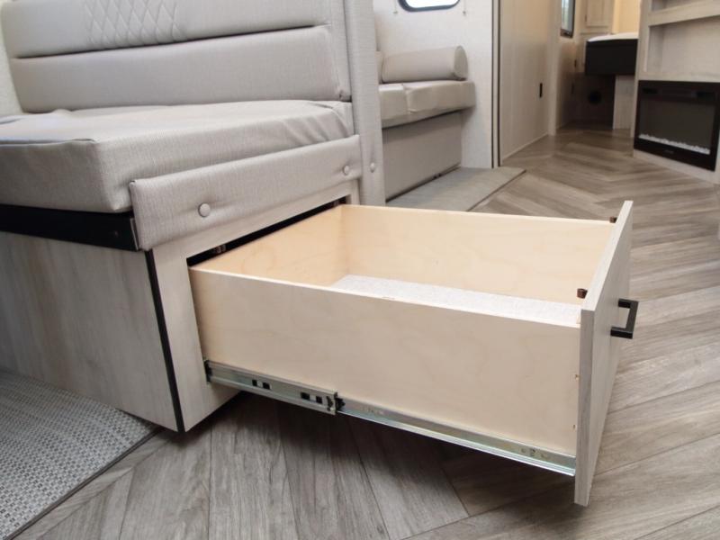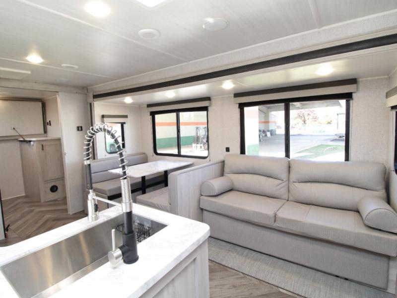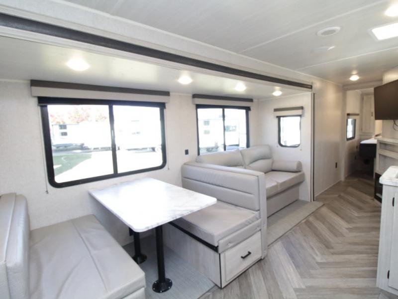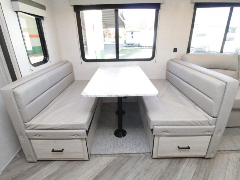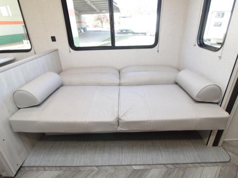 Spacious Living Area – A large slide-out expands the living space to include an oversized booth dinette and jackknife sofa, offering plenty of room for dining, lounging, or extra sleeping accommodations.