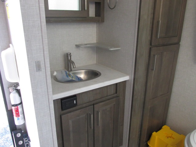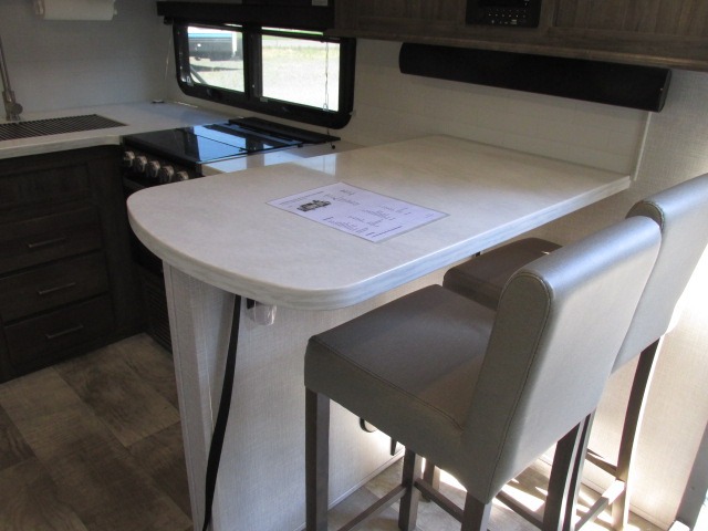 You and your loved one will have a fabulous time getting away with this Flagstaff Classic travel trailer! The two of you will sleep peacefully on your own queen bed slide in the front private bedroom, and this bedroom also showcases the second exterior entry door for quick access while outside. There is great bedroom storage with the under-bed storage, wardrobe, and front storage area, and you can even add an optional TV to the bedroom. The main living area has a breakfast bar with chairs for an easy way to eat meals, and the countertop extension will provide more prep space. You'll also have a great bathroom complete with a Maxxair ventilation fan, linen closet, skylight, and toothbrush holder.