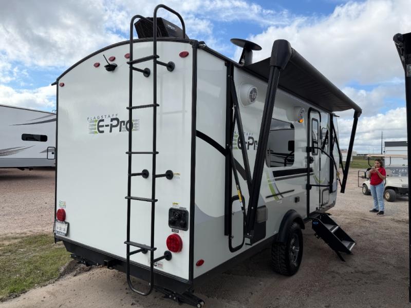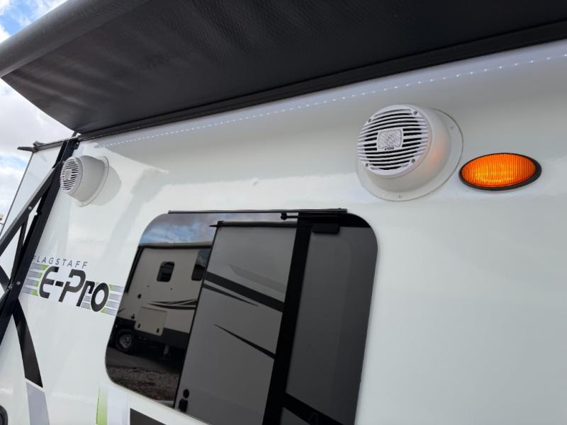 With any Flagstaff E-Pro travel trailer or toy hauler by Forest River, you will experience lightweight towing, style and features that will meet your needs, plus amenities that give you more than you expected! Built with interior and exterior Azdel construction, tongue and grove plywood flooring, and a vacuum laminated roof and walls, plus torsion axle, Rubber-Ryde suspension, and a tire pressure monitoring system for safety while traveling. And the 190-watt roof mount solar panel with 1,000-watt inverter will allow you to stay off-grid if you like. The interior offers a comfortable environment with the choice to use the air conditioner or furnace, and an AM/FM stereo with Bluetooth and USB will allow you to listen to your favorite tunes and keep your cell phone charged. Make your selection today!