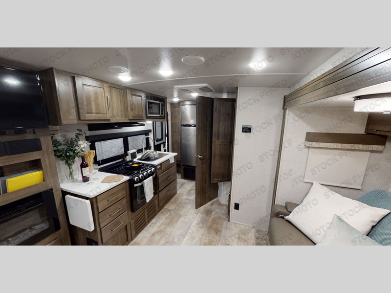 Each Flagstaff Micro Lite travel trailer by Forest River features laminated fiberglass sidewalls, sleek tinted frameless windows, and Azdel composite panels for added strength and support. You can easily tow these travel trailers with an SUV since they are so lightweight, and there is a power tongue jack for quick and easy set up. Some of the convenient amenities you will enjoy are the Teton All-In-One WiFi booster/LTE prep and antenna, the double battery boxes, Key-Alike locks, plus a Maxxair fan with a cover to keep the fresh air moving in your RV. You will love the modern look of the Newport Ash or Autumn Wood cabinetry, plus there are solid wood cabinet doors, solid surface kitchen countertops, and a Showermiser water saving system in the bathroom. Choose a Flagstaff Micro Lite travel trailer and you won't be disappointed!