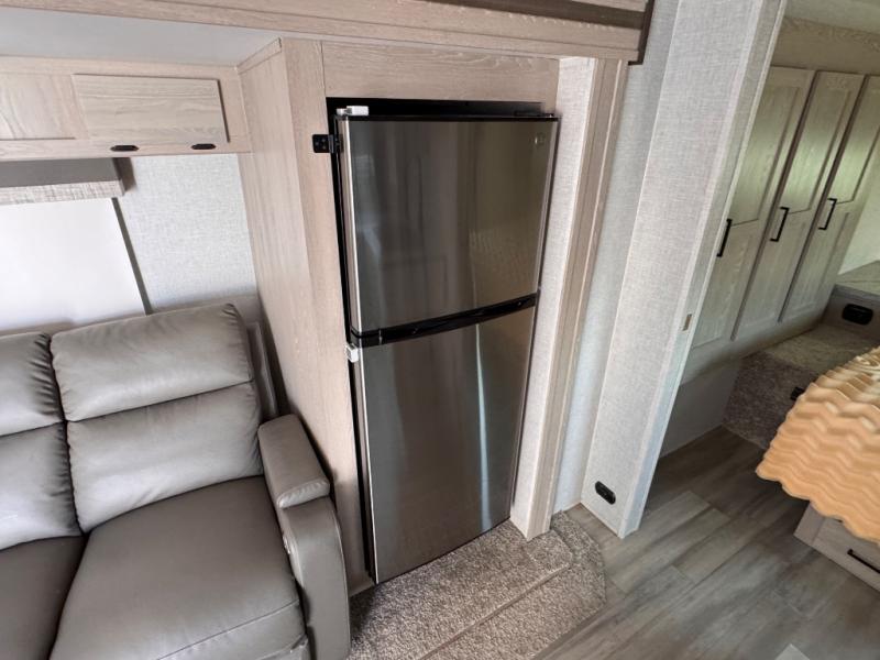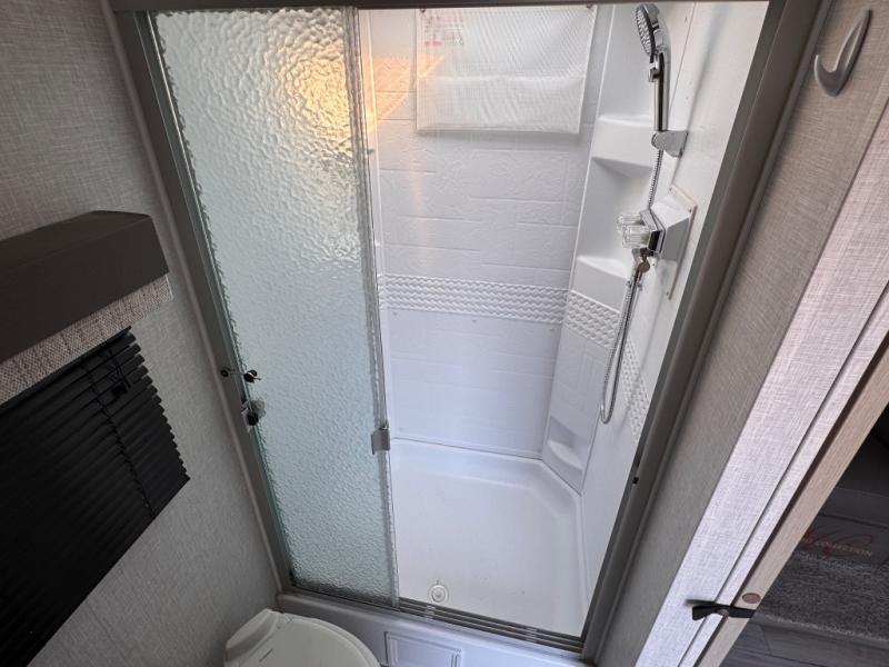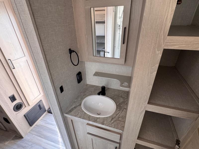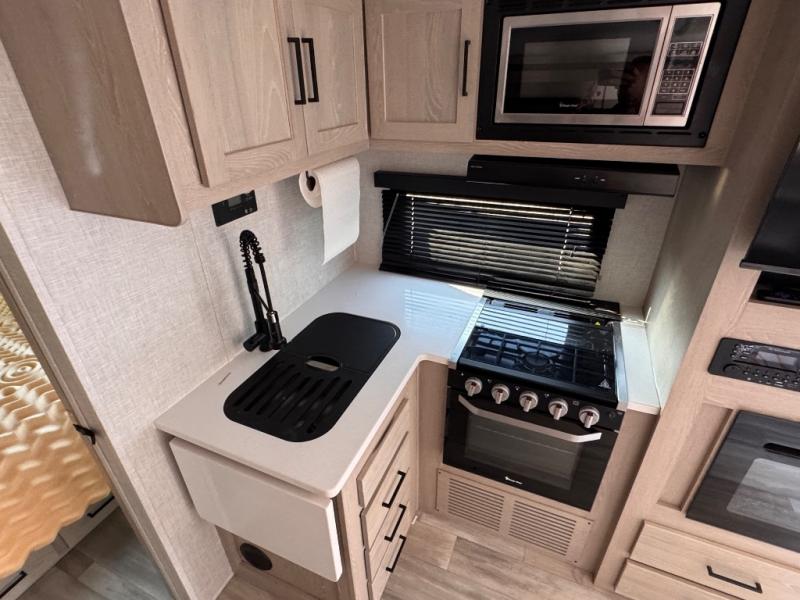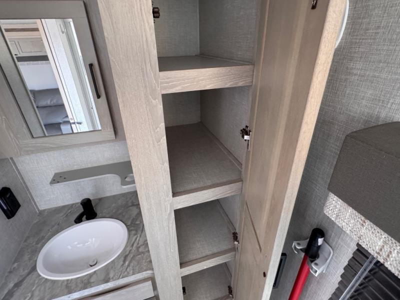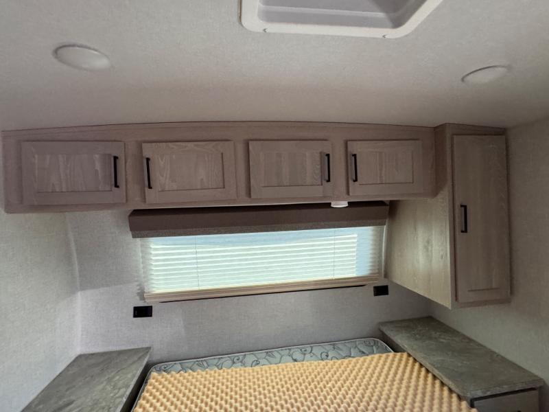 Each Flagstaff Micro Lite travel trailer by Forest River features laminated fiberglass sidewalls, sleek tinted frameless windows, and Azdel composite panels for added strength and support. You can easily tow these travel trailers with an SUV since they are so lightweight, and there is a power tongue jack for quick and easy set up. Some of the convenient amenities you will enjoy are the Teton All-In-One WiFi booster/LTE prep and antenna, the double battery boxes, Key-Alike locks, plus a Maxxair fan with a cover to keep the fresh air moving in your RV. You will love the modern look of the Newport Ash or Autumn Wood cabinetry, plus there are solid wood cabinet doors, solid surface kitchen countertops, and a Showermiser water saving system in the bathroom. Choose a Flagstaff Micro Lite travel trailer and you won't be disappointed!