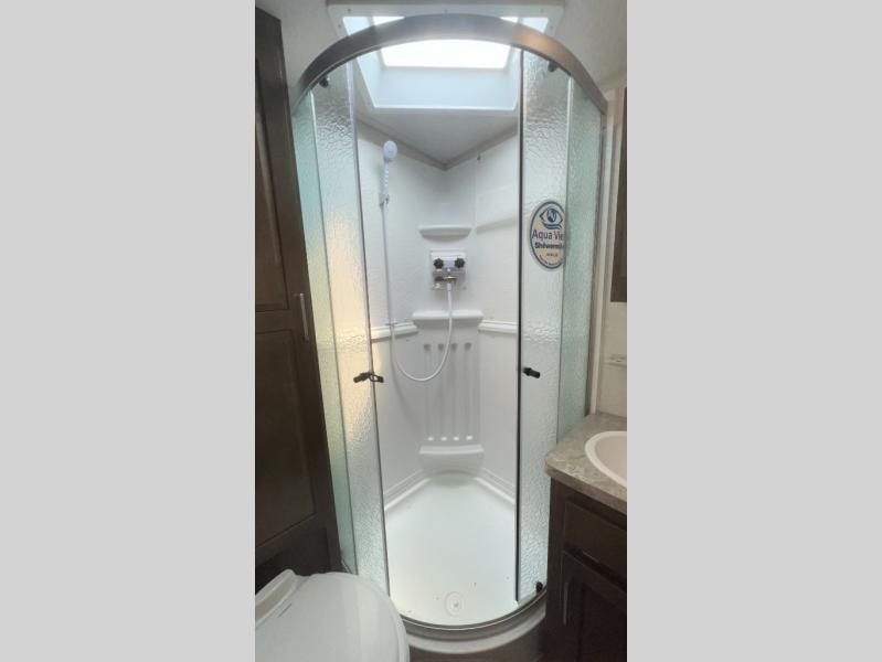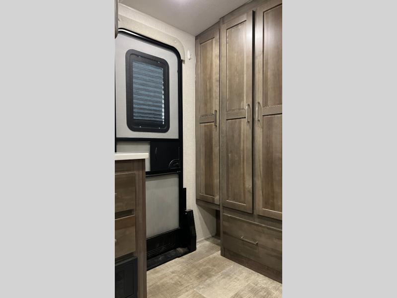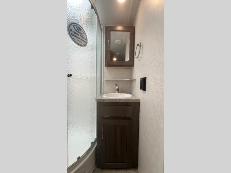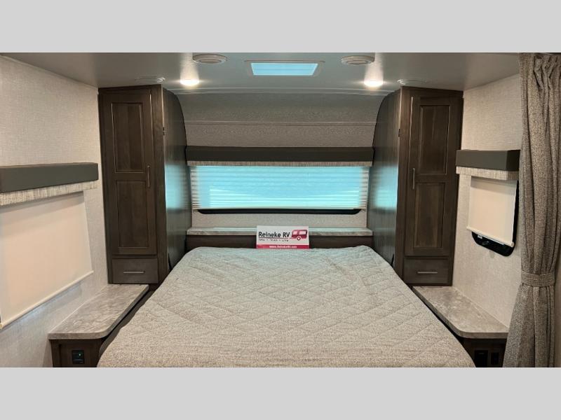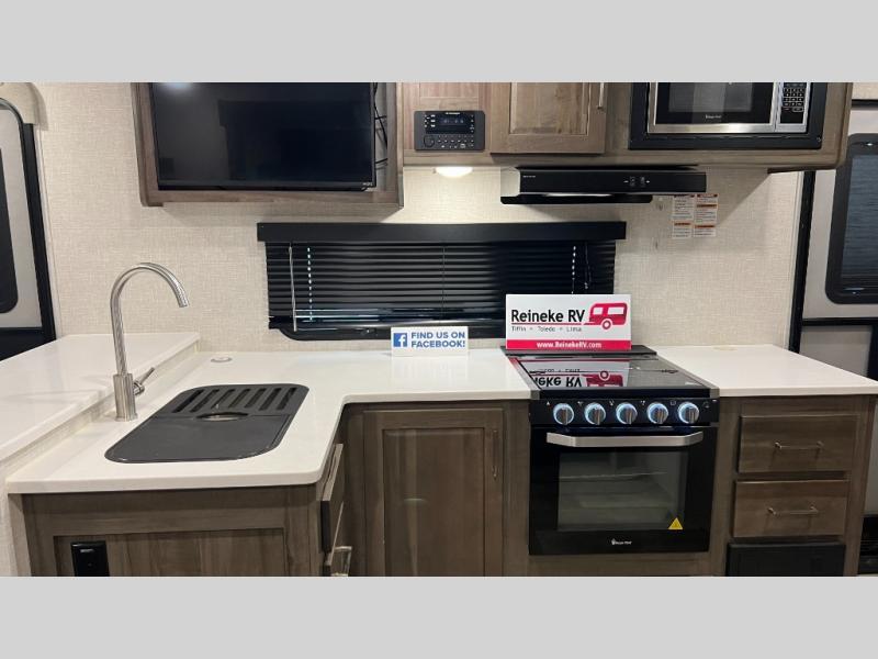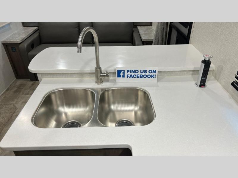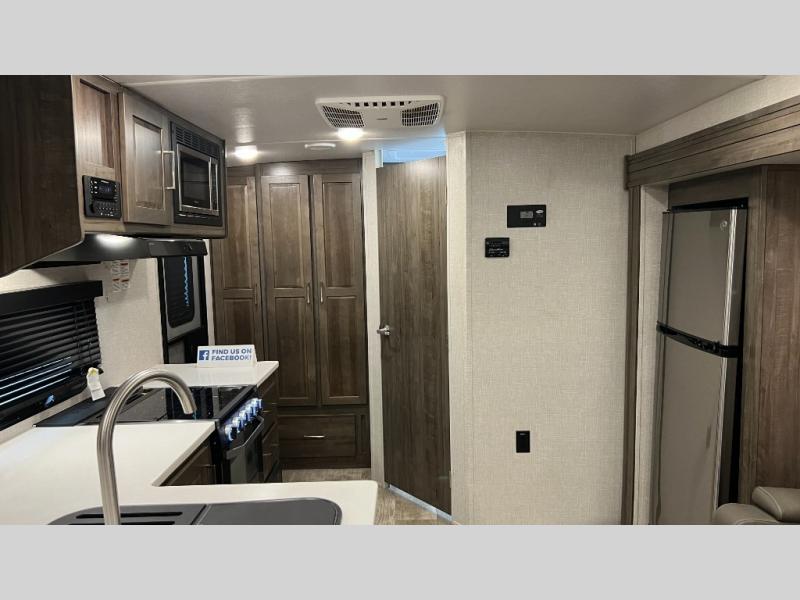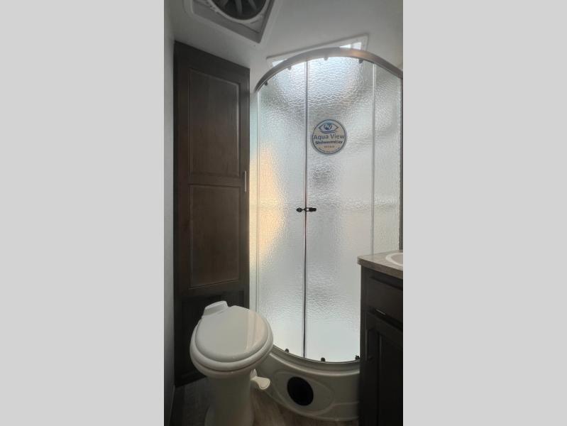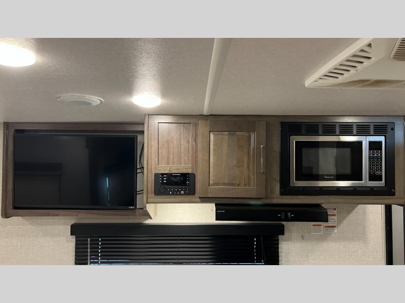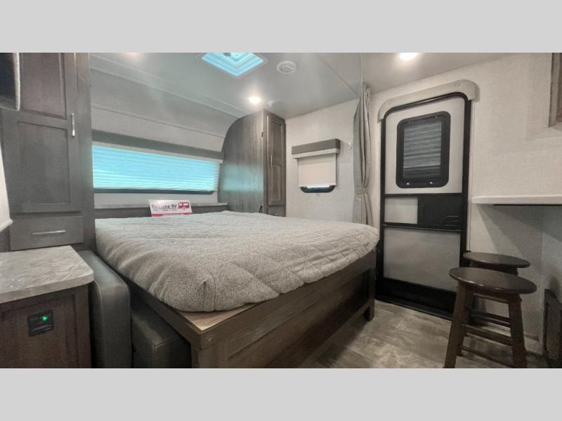 Each Flagstaff Micro Lite travel trailer by Forest River features laminated fiberglass sidewalls, sleek tinted frameless windows, and Azdel composite panels for added strength and support. You can easily tow these travel trailers with an SUV since they are so lightweight, and there is a power tongue jack for quick and easy set up. Some of the convenient amenities you will enjoy are the Teton All-In-One WiFi booster/LTE prep and antenna, the double battery boxes, Key-Alike locks, plus a Maxxair fan with a cover to keep the fresh air moving in your RV. You will love the modern look of the Wood cabinetry, plus there are solid wood cabinet doors, solid surface kitchen countertops, and a Showermiser water saving system in the bathroom. Choose this Flagstaff Micro Lite travel trailer and you won't be disappointed!