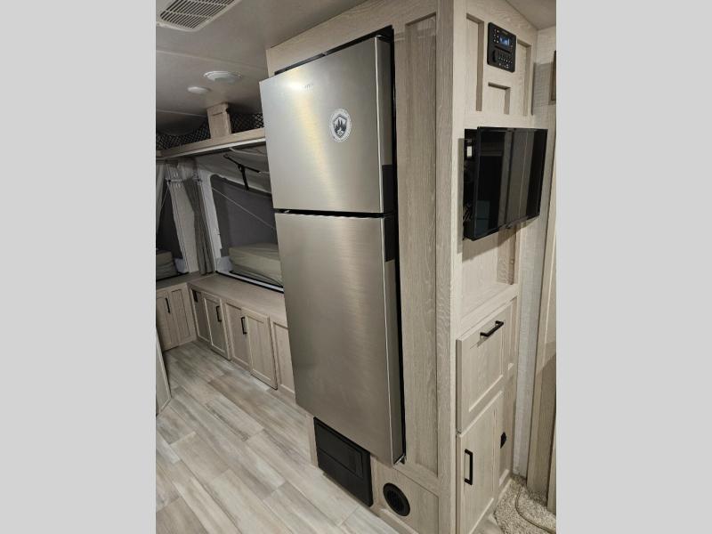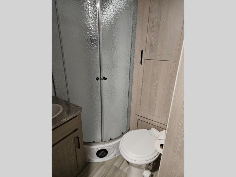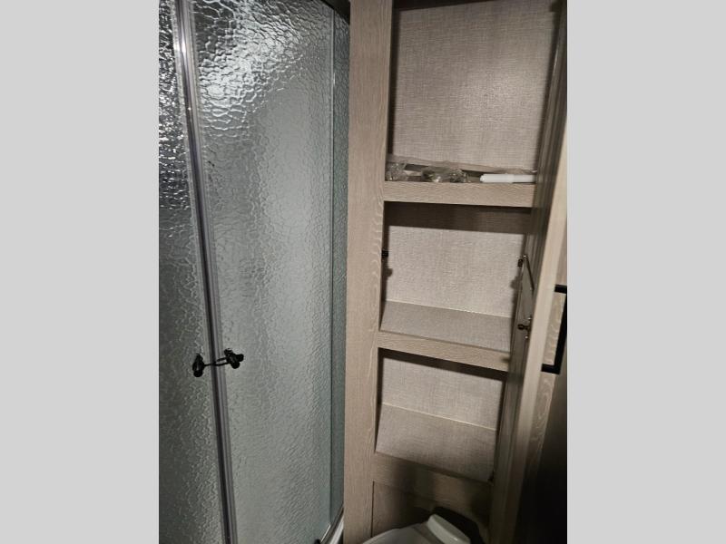 Each Flagstaff Shamrock expandable by Forest River is constructed with Azdel composite panels, radiant foil insulated underbelly and slide out floors, plus aircraft-grade cable supports for the bed ends. You will love the value you get out of these trailers, and each one is easy to tow thanks to the 6-sided full aluminum frame. Some of the convenient exterior features include an outside shower with hot and cold water, outside speakers, a power tongue jack, plus a Teton All In One WiFi booster/LTE prep and antenna for all your connection needs. You are sure to feel right at home with residential features throughout, such as solid wood cabinet doors, pleated night shades, Newport Ash cabinetry, and seamless kitchen countertops. Try your luck with a Flagstaff Shamrock expandable today!