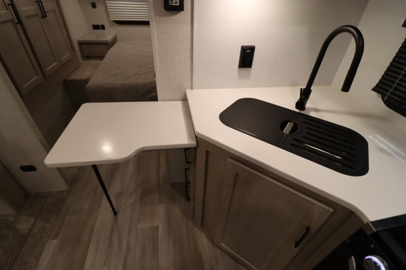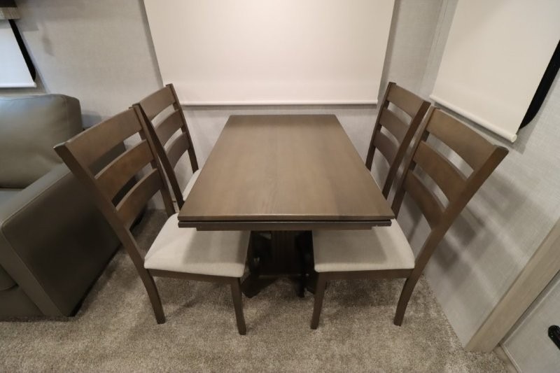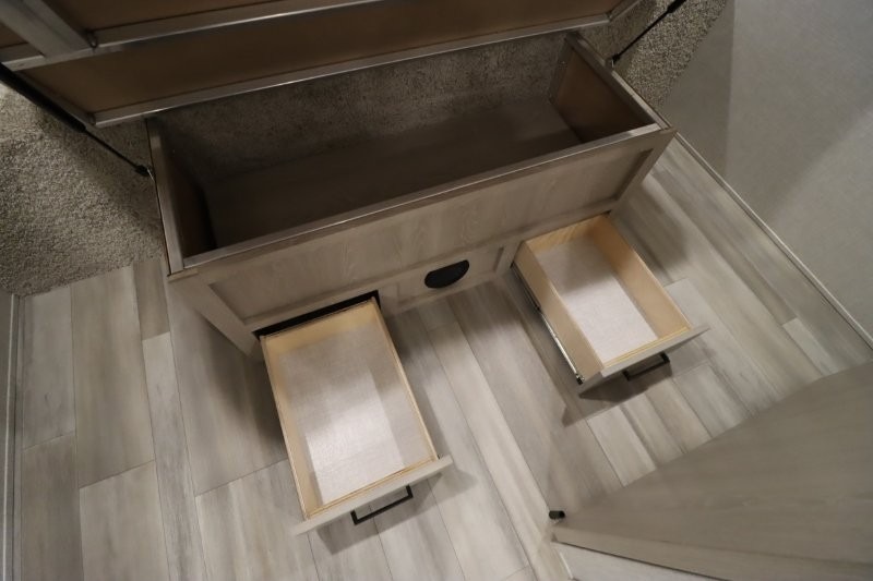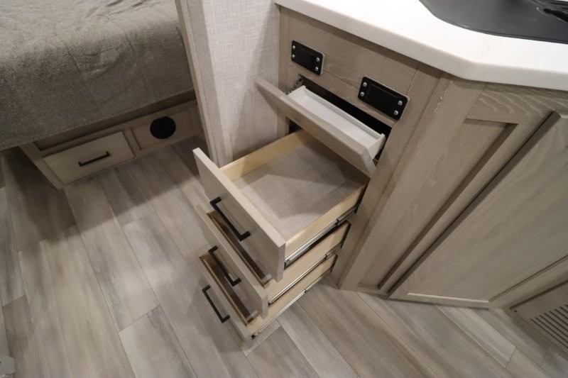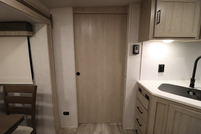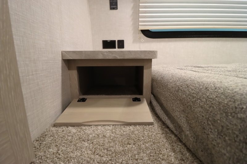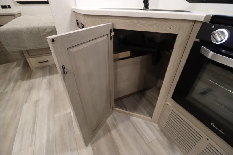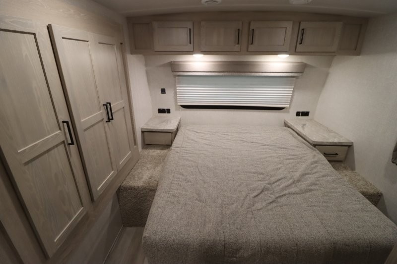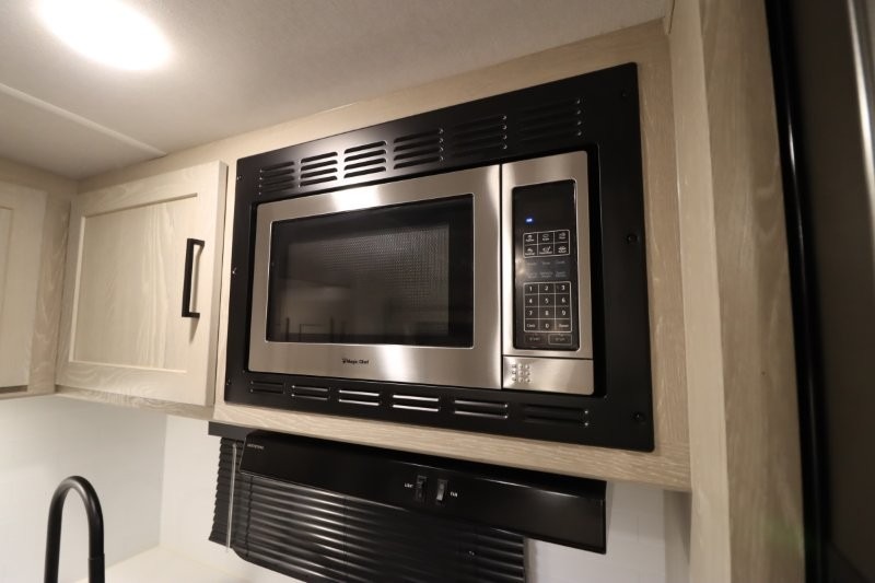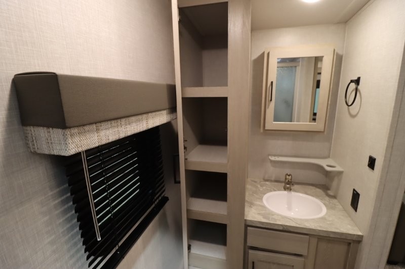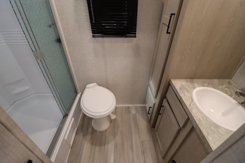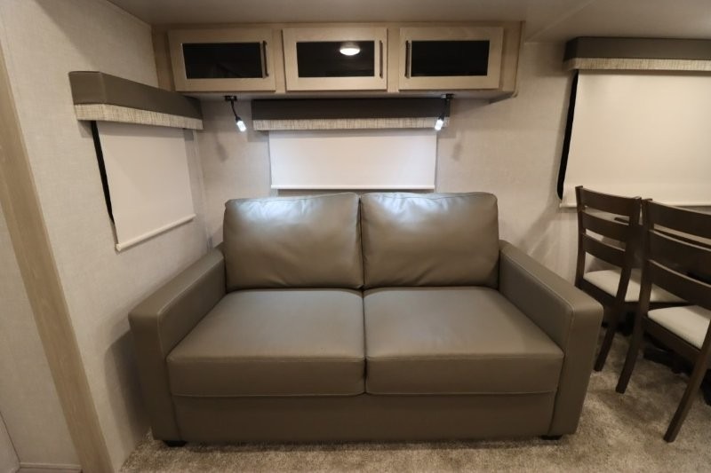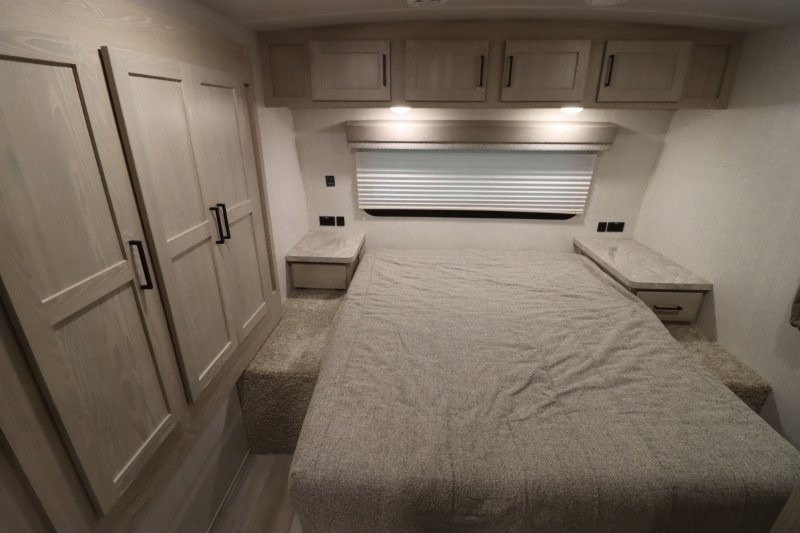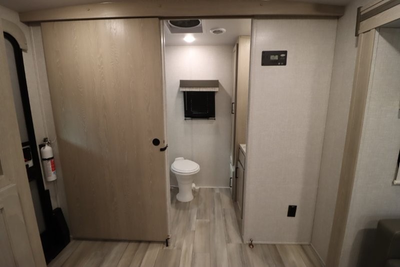 Enjoy inside comforts, and outside conveniences in this trailer. You can relax under the 21' awning which offers an outdoor living area protected from the elements, and a front drop frame pass-through storage allowing you to take camping chairs, tables, fishing poles and such. Enjoy privacy in the rear full bathroom with a space savings sliding door, and a spacious living and kitchen area thanks to the slide out with furniture that also doubles as sleeping space for your kids or guests. The cook will have full amenities to make meals, and when you are ready to sleep, head to the front bedroom with a queen bed and plenty of storage, and a slide out giving you more floor and storage space.