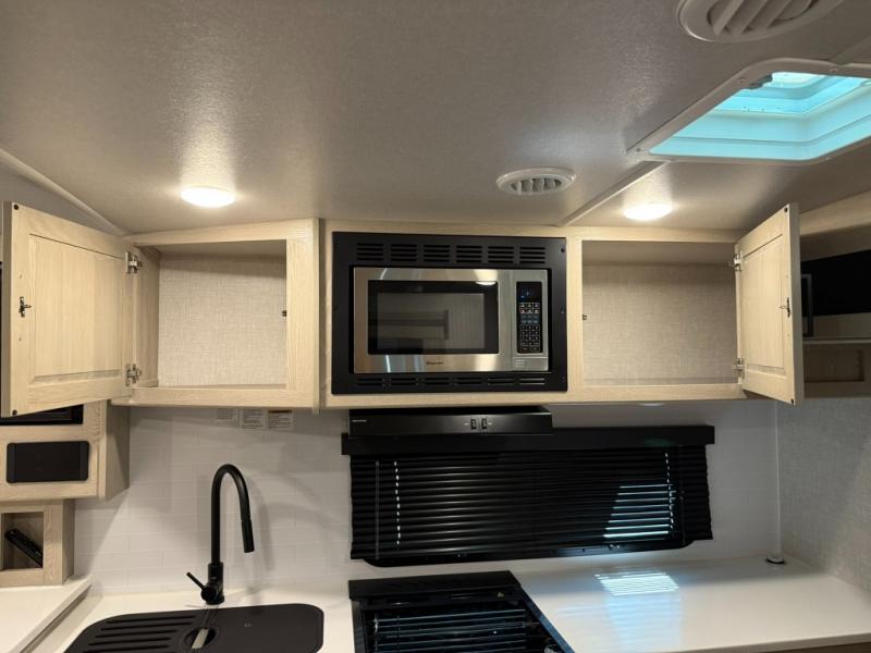 With any Flagstaff Super Lite travel trailer by Forest River the towing features include the TST tire pressure monitor system with a monitor providing safety on the road, Easy Lube axles and Nev-R adjust brakes, a power tongue jack for easy setup, and rear observation camera prep. Each is built with 6 sided aluminum framed side walls, end wall, front, floor and a roof, a plywood tongue and groove subfloor, electronically controlled heated holding tanks and an enclosed underbelly allowing you to travel during any season. The interior offers a Water-Pur filtration system, a multi-zone stereo with DVD, CD, AM/FM and Bluetooth control, a Showermiser water saving system, designer bedding and so much more! Choose a lightweight, towable by half-ton pickup truck Flagstaff Super Lite today!