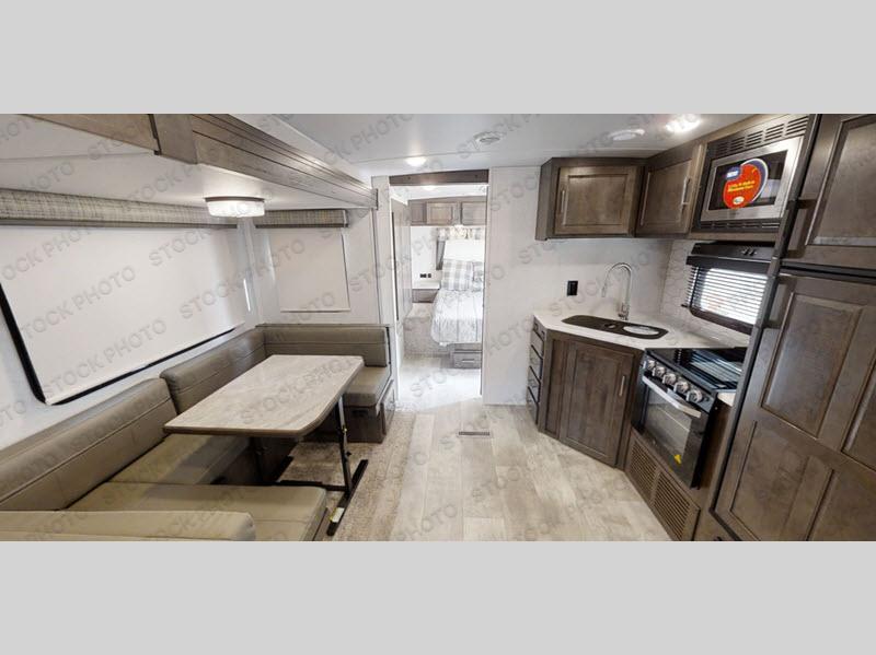 With any Flagstaff Super Lite travel trailer by Forest River the towing features include the TST tire pressure monitor system with a monitor providing safety on the road, Easy Lube axles and Nev-R adjust brakes, a power tongue jack for easy setup, and rear observation camera prep. Each is built with 6 sided aluminum framed side walls, end wall, front, floor and a roof, a plywood tongue and groove subfloor, electronically controlled heated holding tanks and an enclosed underbelly allowing you to travel during any season. The interior offers a Water-Pur filtration system, a multi-zone stereo with DVD, CD, AM/FM and Bluetooth control, a Showermiser water saving system, designer bedding and so much more! Choose a lightweight, towable by half-ton pickup truck Flagstaff Super Lite today!
