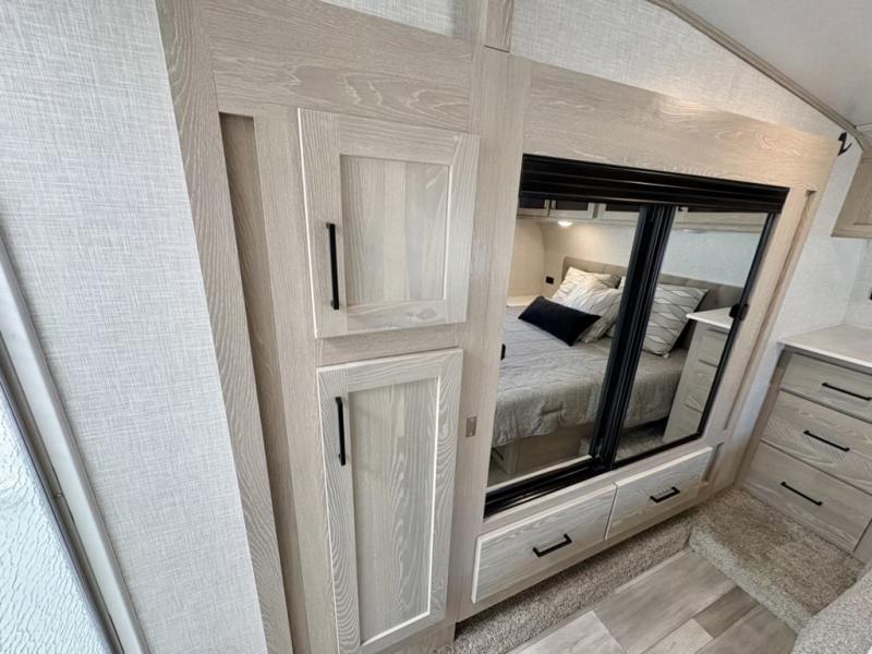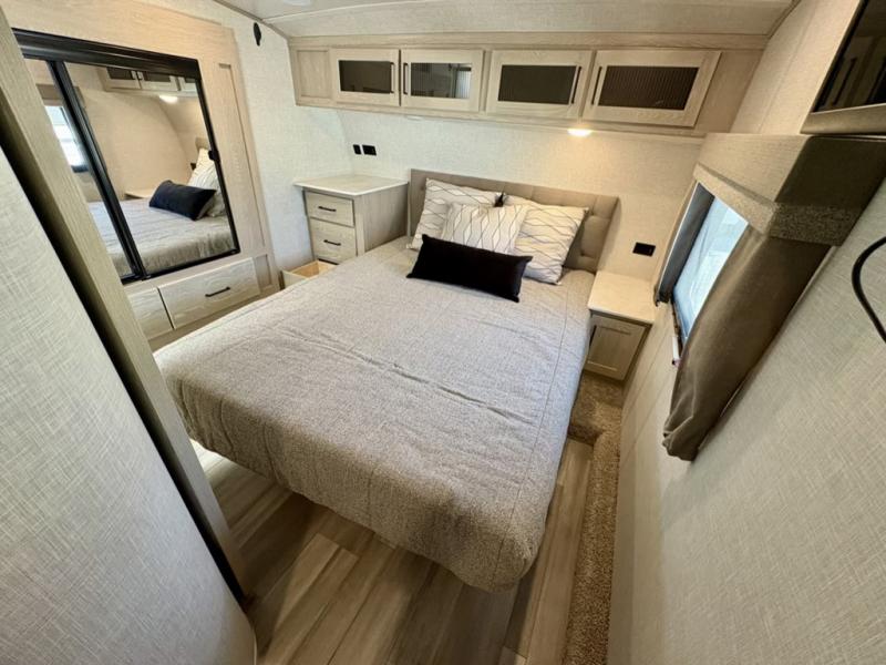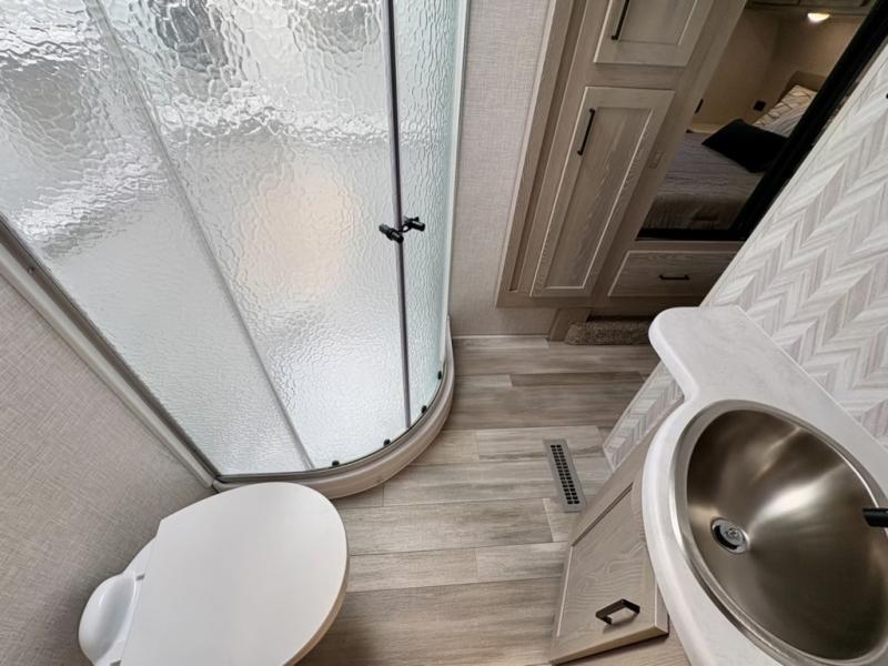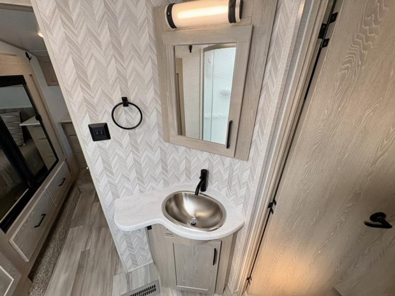 With any Flagstaff Super Lite fifth wheel by Forest River the towing features include the LCI turning point pin box hitch for easy maneuvering, the TST tire pressure monitor system with a monitor providing safety on the road, Easy Lube axles and Nev-R adjust brakes, and rear observation camera prep. Each is built with 6 sided aluminum framed walls, floor and roof, a radius roof with a vaulted interior ceiling, thermostatically controlled heated holding tanks and an enclosed underbelly allowing you to travel during any season. The interior offers a Water-Pur filtration system, hidden hinge cabinet doors, a porcelain residential-style bowl toilet, a headboard and residential bedding for style and comfort and so much more! Choose a lightweight, towable by half-ton or three-quarter ton pickup truck Flagstaff Super Lite today!