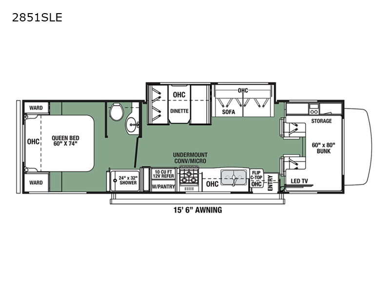 Toward the rear, the private bedroom provides a peaceful retreat with a walk-around queen bed and ample storage for longer trips, while the full bathroom offers a residential-style shower and convenience that makes life on the road feel effortless. Built on a dependable Ford chassis, the Forester 2851SLE balances comfortable living with confident driving, giving you the freedom to explore without giving up the comforts of home. It’s a welcoming, move-in-ready space perfect for travelers who want both ease and livability in one well-crafted motor home.