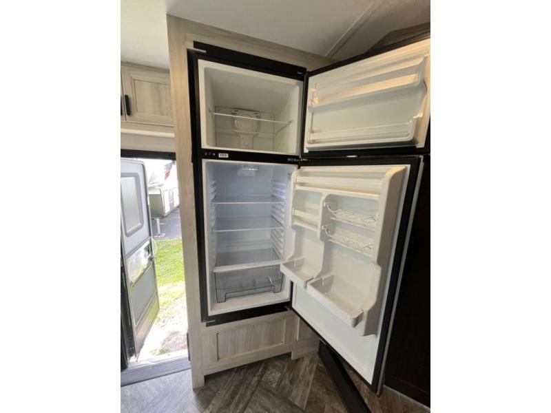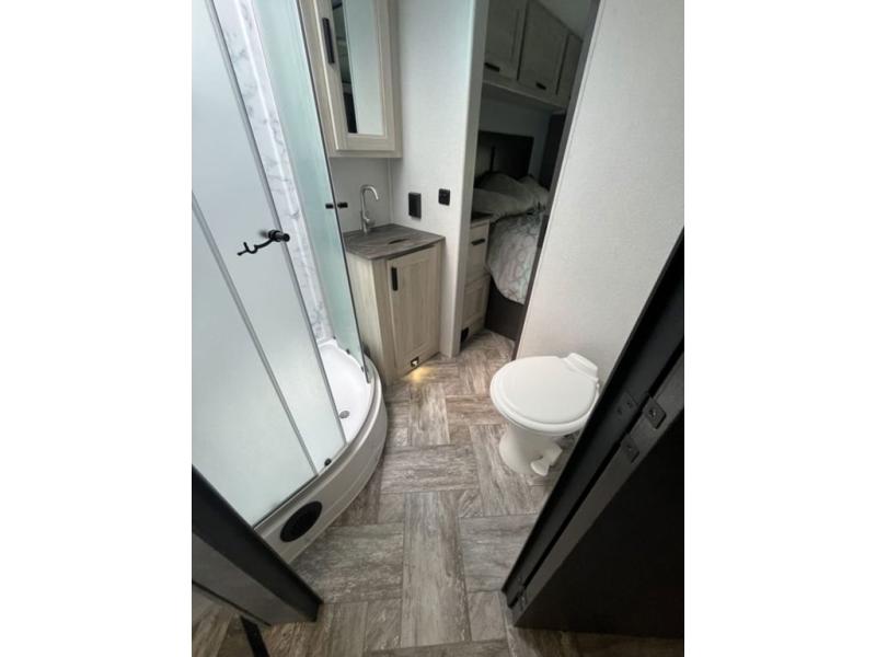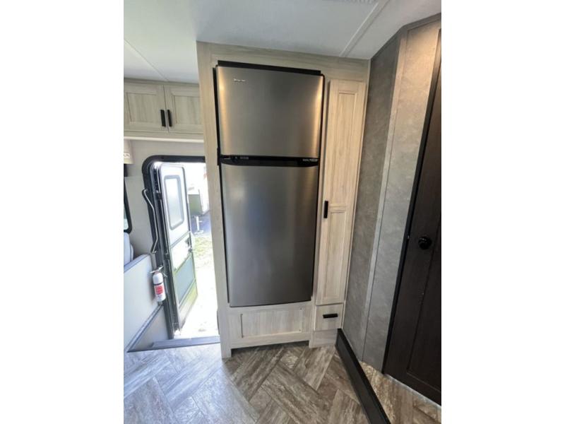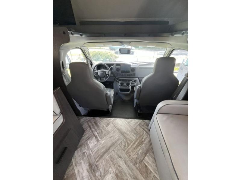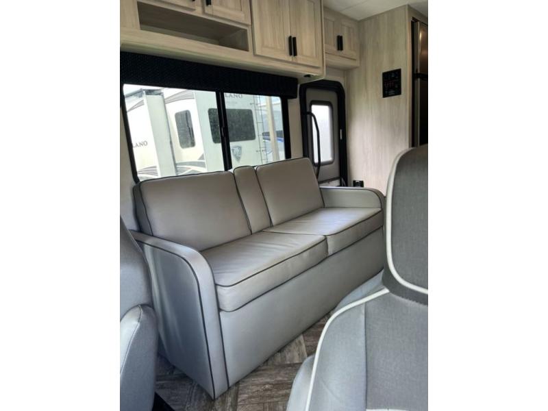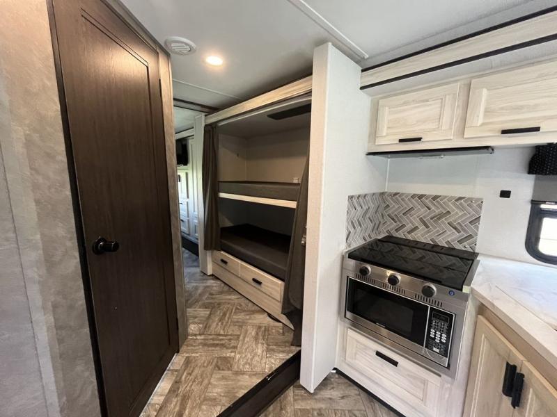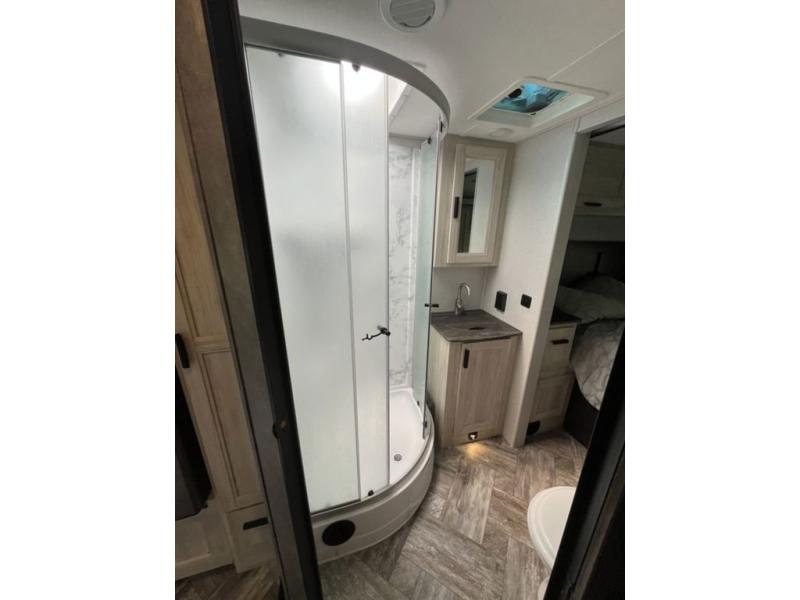 The whole family can travel together in this motorhome! There is a set of 27" x 72" bunk beds, a 60" x 80" bunk over cab mat, and a 60" x 74" queen bed to lay your heads at night, plus the sofa and the booth dinette can transform into extra sleeping spaces if needed. Everyone can easily access the dual entry bathroom which has a 32" x 32" radius shower to freshen up in each morning. The kitchen has everything you need to prepare your best meals like a three burner cooktop, a 10 cu. ft. 12V refrigerator with a pantry, an undermount 1.3 cu. ft. convection microwave, and a flip-up countertop. You can even choose to add an optional outside 12V TV to watch the big game in the great outdoors!
