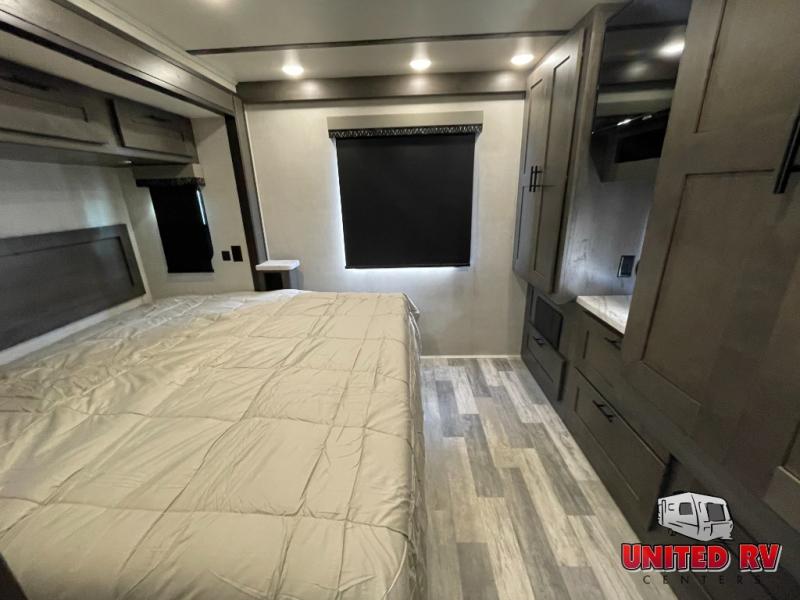 Whether you travel with your spouse or with your grandkids or maybe you enjoy taking your friends on adventures, this FR3 Class A gas motorhome allows you to travel in style with plenty of additional sleeping choices from the power overhead bunk to the furniture once they are set up a night. You can dine at the wrap-around booth dinette, relax on the hide-a-bed sofa, and make full meals in the kitchen which also includes a residential microwave and countertop extension. The separated bathroom allows someone to take a shower while another freshens up in the sink and toilet room, or maybe you decide to close this area off within the bedroom. Every night you can sleep like a king while watching the LED TV in the bedroom, and maybe you decided to add the washer/dryer option to keep everything clean while on the road.