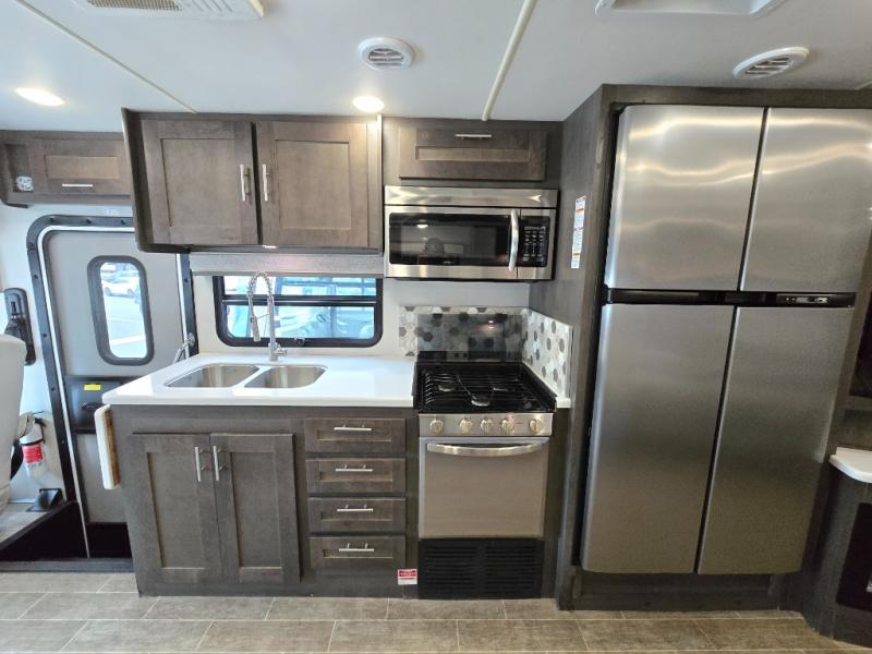 A spacious design and true luxury come together to create these Forest River Georgetown 5 Series Class A gas motorhomes! Their solid surface kitchen countertops and Precision Circuits Multiplex w/ wireless technology will have you feeling right at home. The color side and rear cameras help to prevent any dings or bumps while you travel, and the automatic hydraulic leveling jacks will keep your unit leveled where ever you set up. The construction consists of a multi-layered laminated roof system that includes tubular aluminum framing, a crowned fiberglass roof, and block foam insulation. The vacuum-bond laminated sidewalls not only have a gelcoat fiberglass exterior and tubular aluminum framing, but also EGS metal backers to increase the support for the interior cabinetry. Come find your favorite model today!