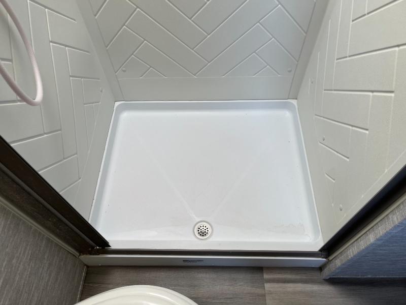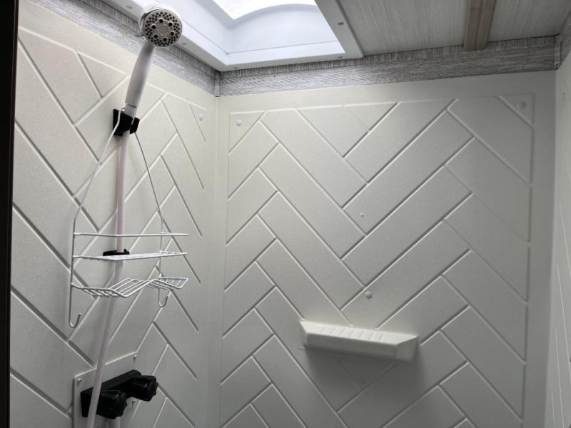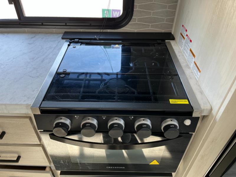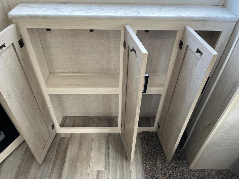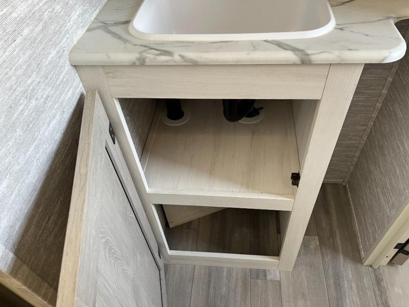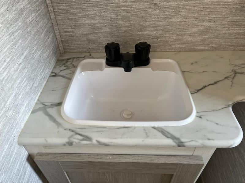 Enjoy the convenience of your own full bathroom, complete with a shower, toilet, and vanity. This well-appointed space is designed for every-day ease — no waiting for campground facilities or shared restrooms. The practical layout ensures privacy and comfort wherever you roam.