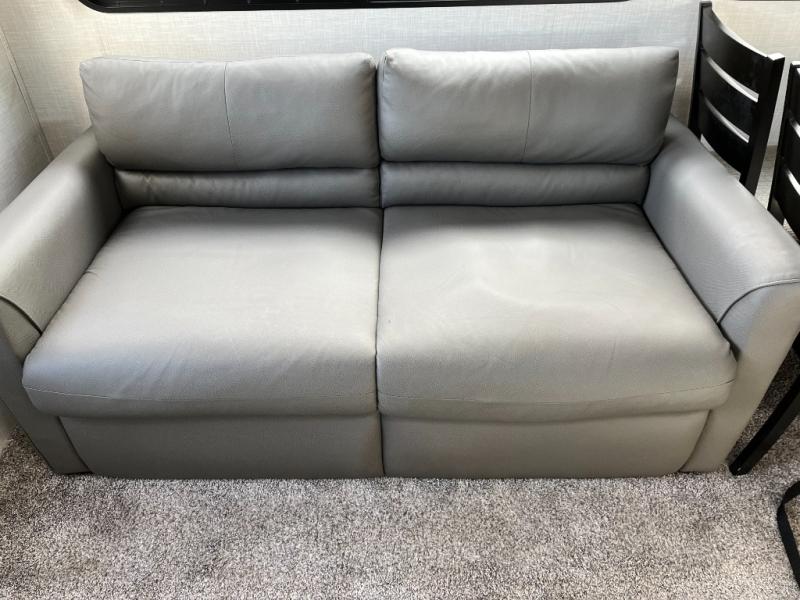 Step inside the Impression and experience a welcoming, open living area with plenty of room to relax and entertain. Large windows fill the cabin with natural light and provide panoramic views of your surroundings. The well-designed floorplan includes comfortable seating — including swiveling captain’s chairs, a plush sofa, and a dinette — so you can enjoy meals, hobbies, or game nights anywhere your travels take you.