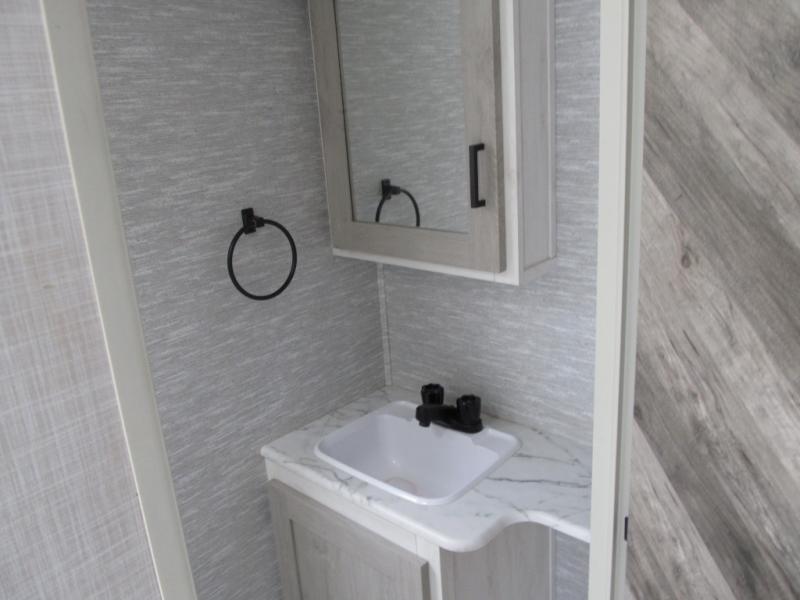With any Impression mid-profile fifth wheel by Forest River, the focus of the design is comfort and value, built with quality craftsmanship and attention to customer's desires in each Impression! The exterior includes upgraded E-rated Goodyear Endurance tires made in the U.S.A., custom exterior graphics package, and One Touch automatic leveling system for easy setup. There is also an enclosed docking station and a gel coat fiberglass front cap with an automotive windshield with LED lights for style and beautiful views. The fully heated and enclosed AccessiBelly has removable underbelly panels and offers four seasons of travel. The interior has oversized opening windows in the living area for more natural lighting and good air flow, a stainless steel single bowl sink with high rise faucet with a pulldown sprayer to easily clean the dishes, and a porcelain foot flush toilet to mention a few comforts and conveniences.