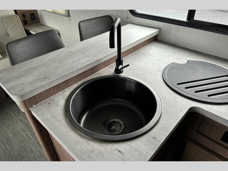 If you want to break free from the travel constraints of standard trailers, then you must choose the Forest River No Boundaries travel trailer or toy hauler because they are rugged and ready for adventure! These trailers offer you a Rhino Rack RVT track to bring along your kayaks or fishing equipment, high-performance vinyl furniture to relax on, a USB charging station to power your electronics, and a Cold Weather Package to keep you warm during the cold season. You'll also have satin matte-finish six-lug wheels wrapped in all-terrain tires for an exceptional ride.