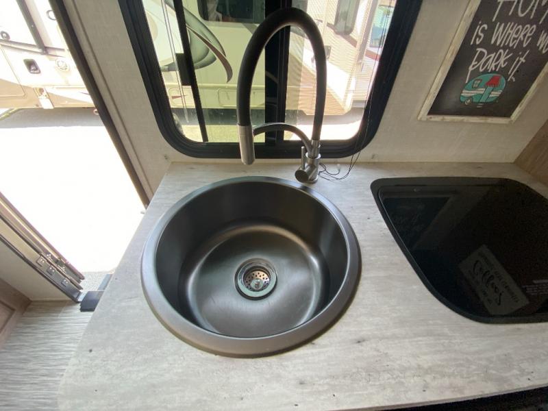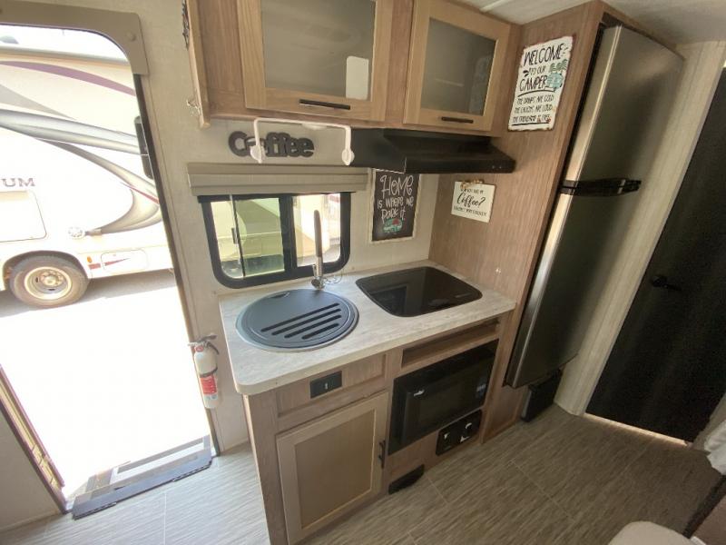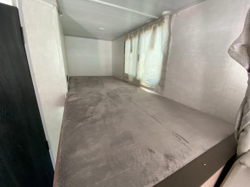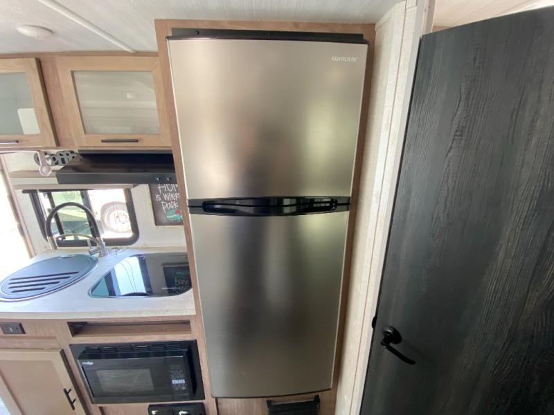 This No Boundaries travel trailer will make your life easier with its bunk beds, chaise lounge, and queen-size bed. Now you can bring along your favorite people without worrying where they will sleep at night. The single slide gives you more space for staying inside and spending time together, and there is an entertainment center that you can use while you're in there. This trailer also has great storage with the bathroom closet, kitchen refrigerator, overhead cabinets, and exterior pass-through storage. You'll also have a 14' power awning that will protect you while you're outside enjoying the weather.