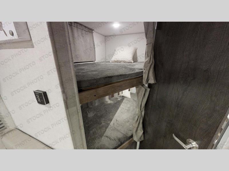 With this No Boundaries travel trailer, you can go to places you've never been before! This rugged trailer offers you lots of storage for your favorite equipment with the J-cradle kayak holder, two vortex bars, and RVT track all from Rhino Rack. The 16' power awning will protect you while you're outside having fun, and once you make your way inside, you can sit down at the 30" x 75" booth dinette for some dinner. The 44" x 74" bunks will give you extra sleeping space without taking up too much room, and the Murphy bed also utilizes space well by folding away during the day to reveal a sofa.