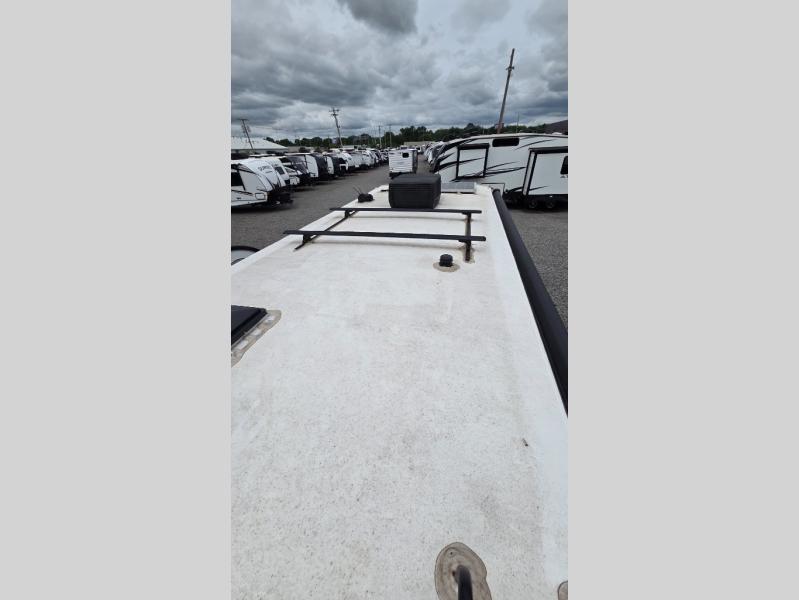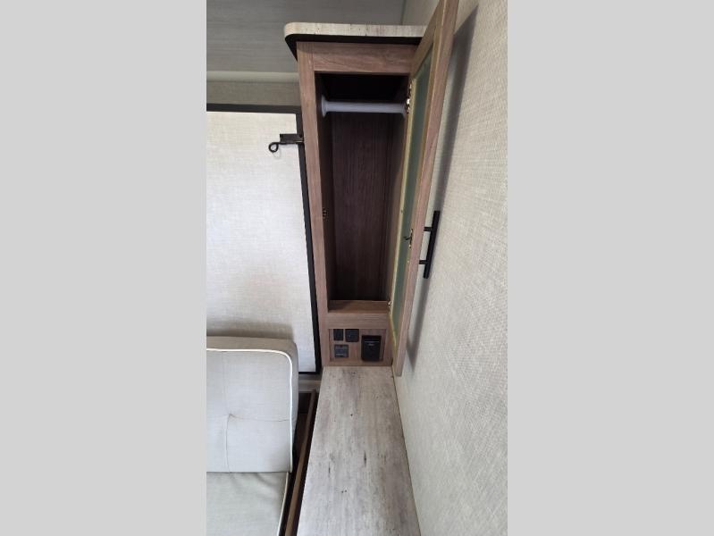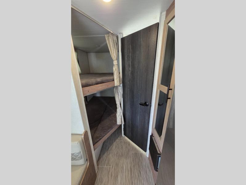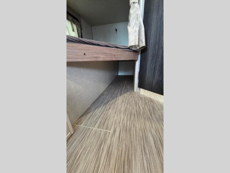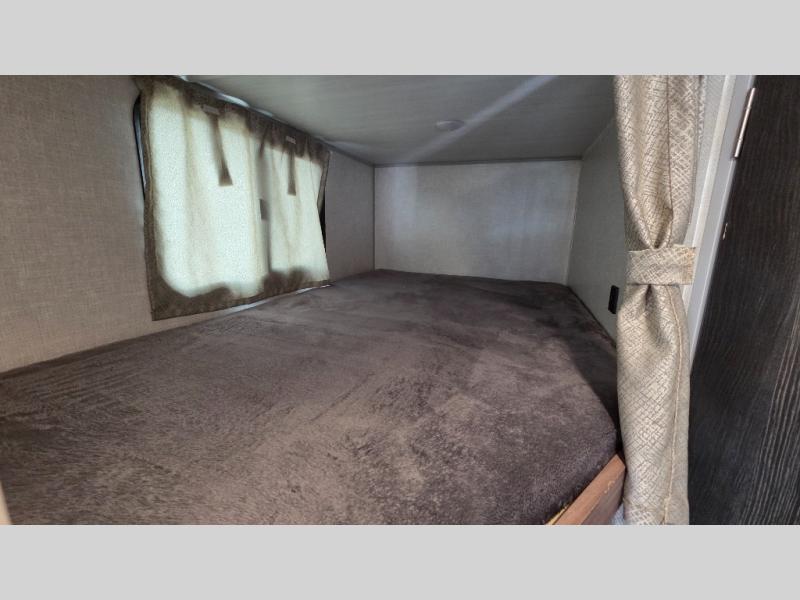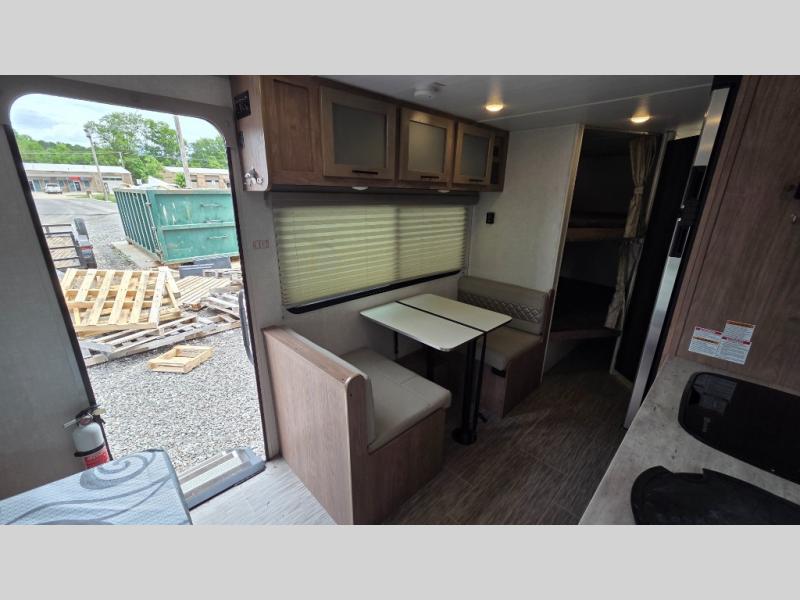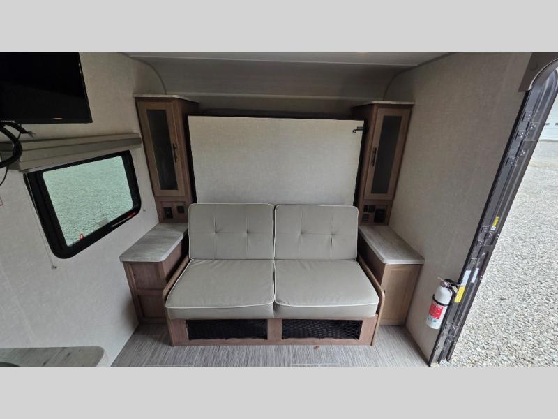 With this No Boundaries travel trailer, you can go to places you've never been before! This rugged trailer offers you lots of storage for your favorite equipment with the J-cradle kayak holder, two vortex bars, and RVT track all from Rhino Rack. The 16' power awning will protect you while you're outside having fun, and once you make your way inside, you can sit down at the 30" x 75" booth dinette for some dinner. The 44" x 74" bunks will give you extra sleeping space without taking up too much room, and the Murphy bed also utilizes space well by folding away during the day to reveal a sofa.